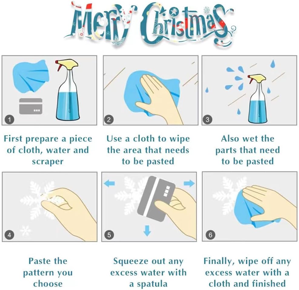 - Christmas Window Stickers are Easy to Stick: Make sure the surface is smooth and free of any textures (such as mirrors and glass) and clean the surface to make sure there is no dust and grease before sticking the Christmas stickers. Spray a little water on the surface, the water will make them stick better. Then you can enjoy your snowflake window stickers, pretty and festive.