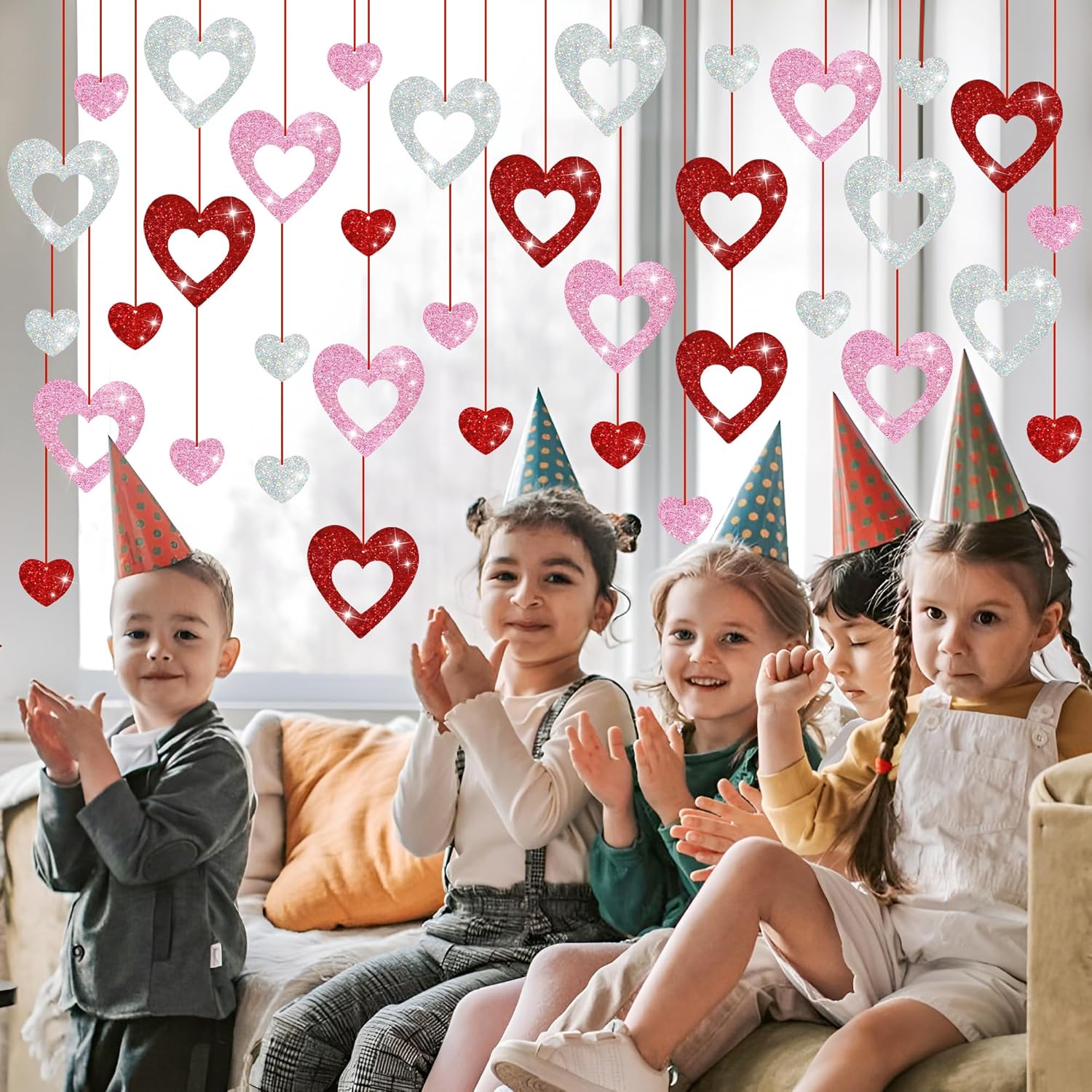 Perfect for Valentine: A great addition to celebrate Valentine’s Day, transforming any room or venue into a festive holiday celebration with these pretty glitter heart hanging swirls.