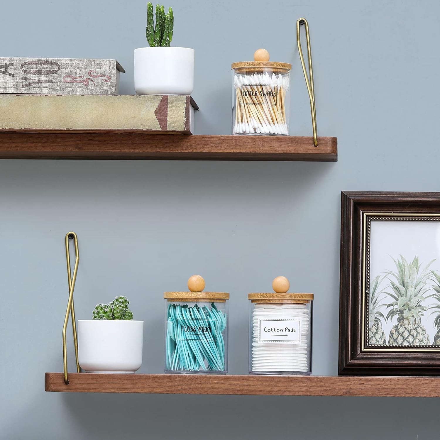 - PRODUCT INCLUDE: Item includes 4 pack 10 Oz q tip apothecary jar with bamboo lids [ Diameter - 2.7 inches, Height - 4.5 inches], 6 white labels, 6 transparent labels with black words (Cotton Balls, Cotton Swabs, Cotton Pads, Hair Ties, Floss Picks, Bath Salt). Uniquely designed labels are commonly used by most people. You can also DIY you're writing on the white labels