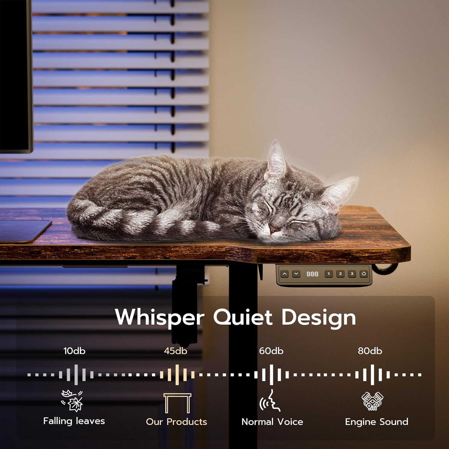 - Electric Height Adjustable Desk The stand-up desk can be adjusted between 28.3"-46.4" with low noise motor(under 45db) while running, A variety of height choices satisfy your multiple tasks, both standing and sitting.