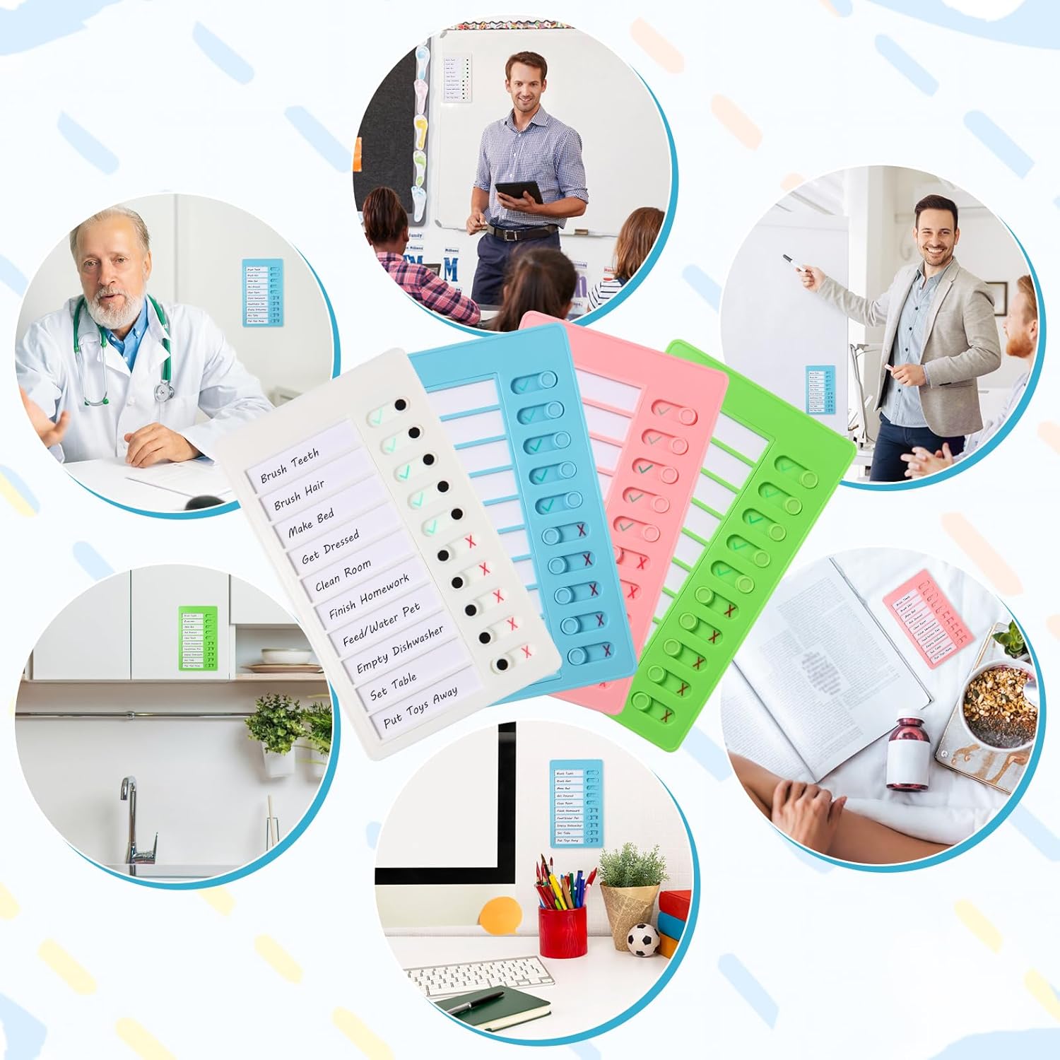 - What You Will Get - There are 4 pieces chore chart for kid's chore list and 10 sheets cardstock, which can meet your daily routine chart needs, and it is easy to use to do list board, just slide the slider from one side of the marker to the other.