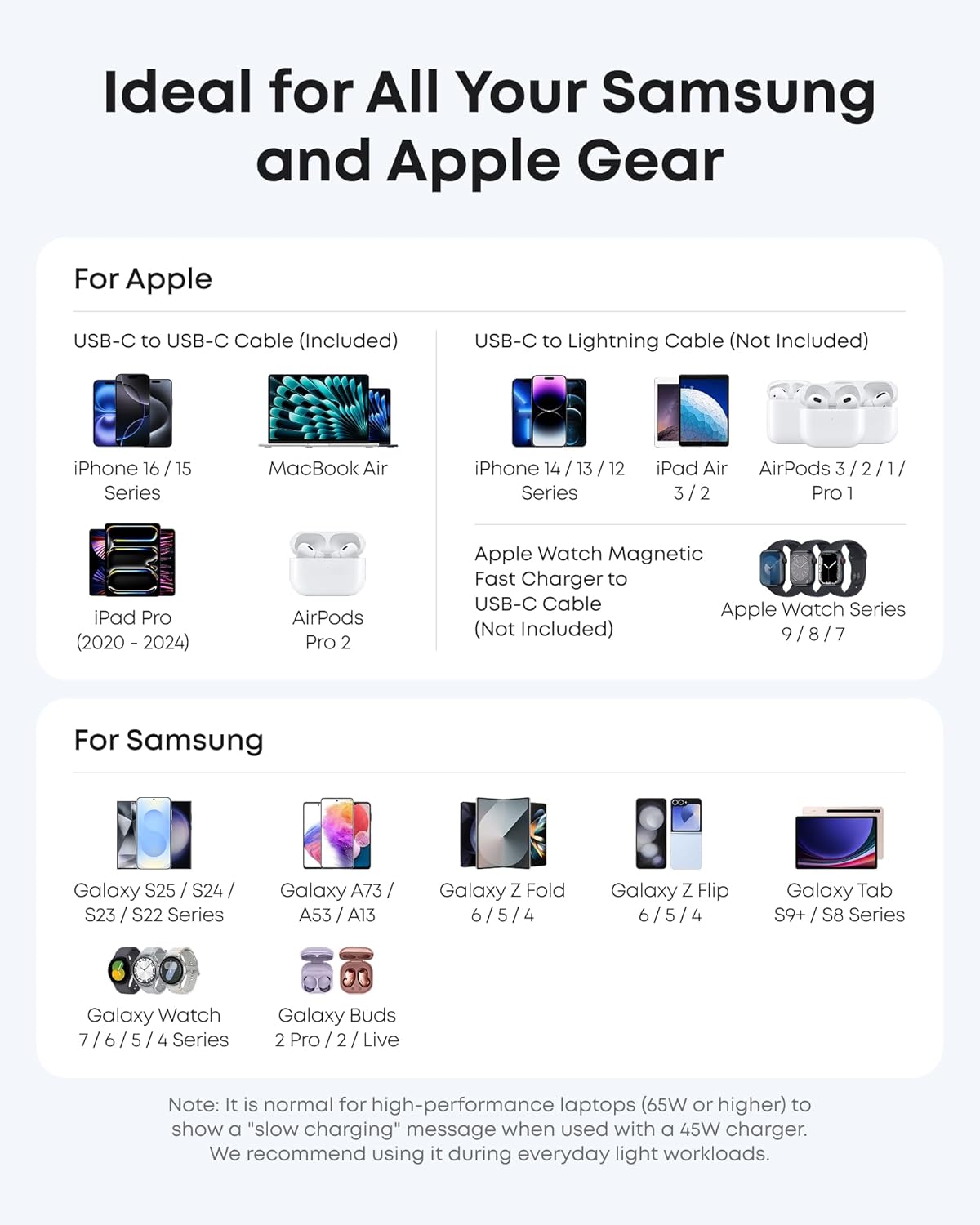 - Quick Power Boost: Experience fast iPhone charging speeds with Super-Fast Charging, powered by advanced Gan technology—perfect for quick energy boosts.