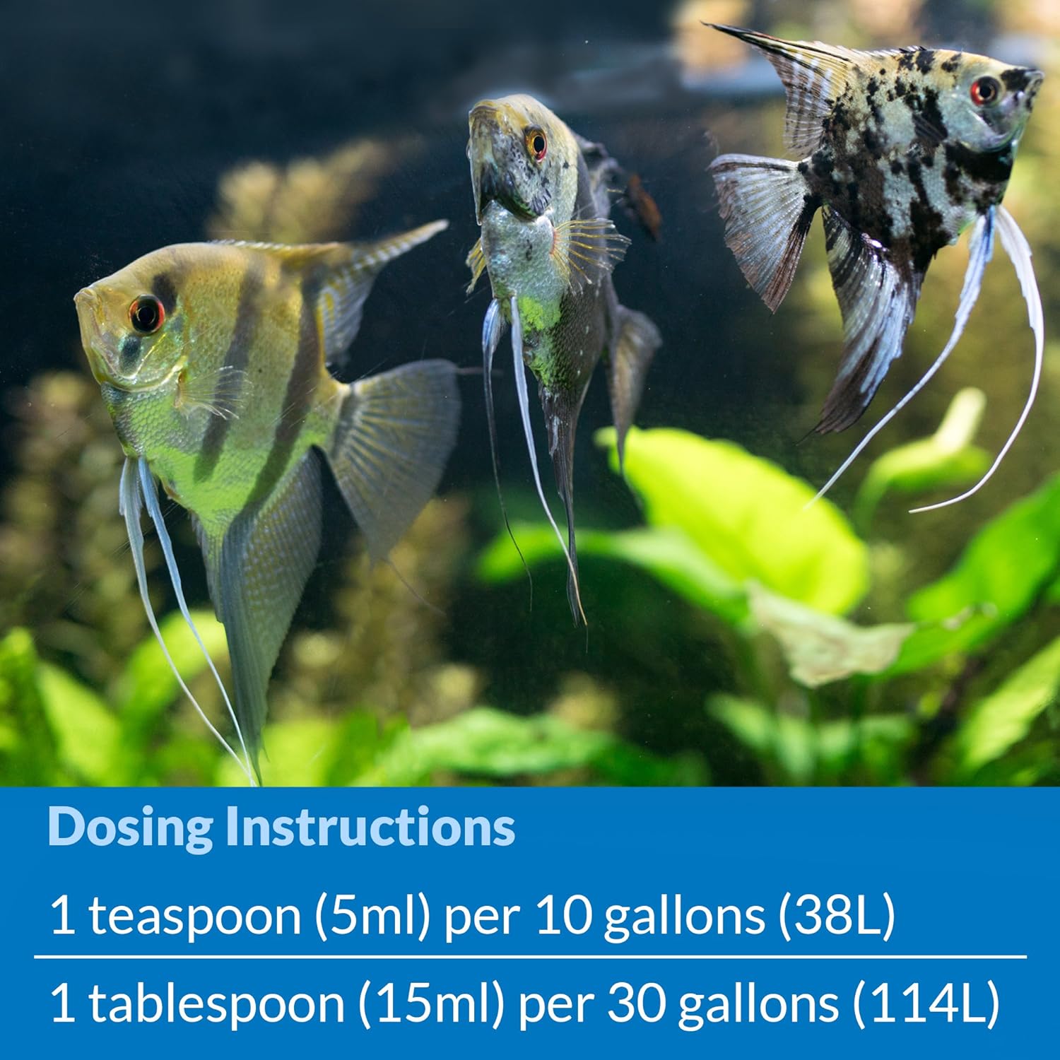 - Instructions: Add 5 ml. for each 10 gallons of aquarium water. Double the dose to replace slime coat and to repair damaged skin and fins