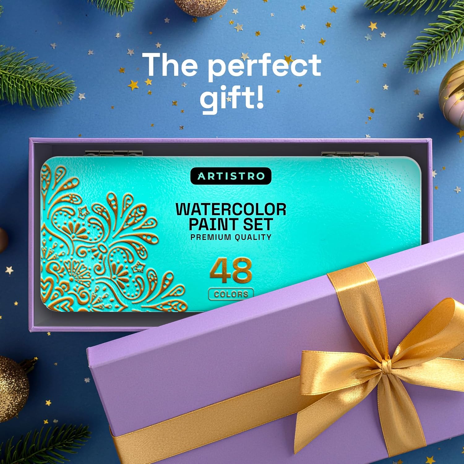 - Elegant Design & Giftable Box: This lightweight watercolor plate set has a tin box that’s both stylish and practical. Gift these watercolors to professionals or beginners. It’s both a kids watercolor paint set and a watercolor paint set kit.