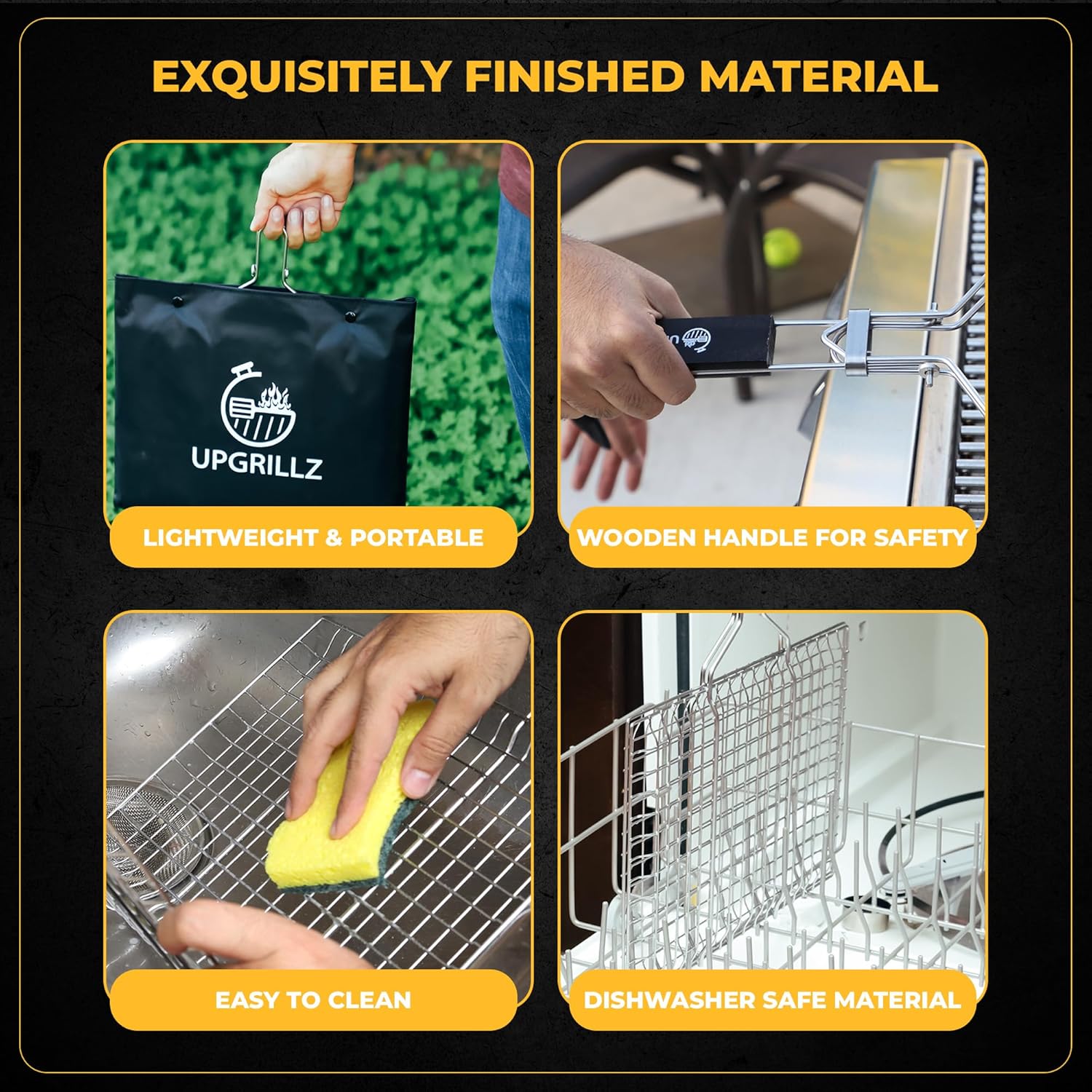 - Perfect Package Upgrillz is concerned to give you an ultimate grilling experience therefore in addition to the grilling fish basket, we have included 50 Skewers and a silicone brush in the package to save your time and money buying it separately.
