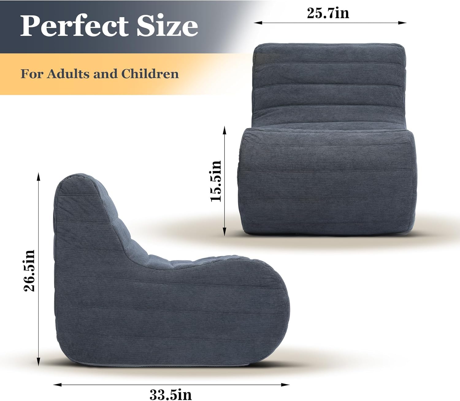 - Comfortable Fabric: Crafted with soft, high-quality corduroy, this bean bag couch feels as good as it looks. The breathable fabric makes it a comfy spot whether in the winter or in the summer. The soft gray exterior fits effortlessly into any room decor while providing a durable, long-lasting surface. Removable cover is convenient for cleaning and maintenance
