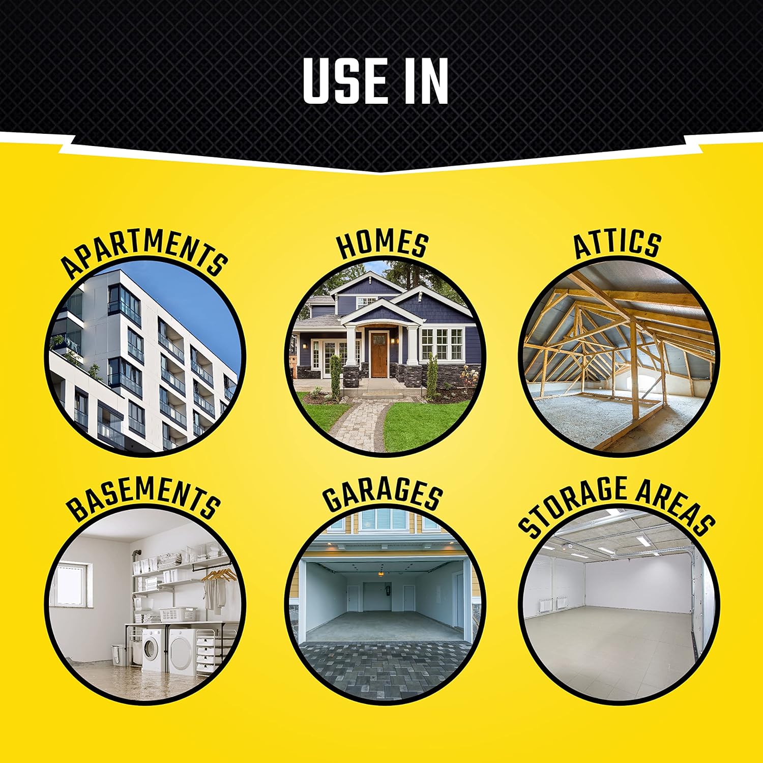 - USE INDOORS: Treat in apartments, homes, attics, basements, garages, and household storage areas.