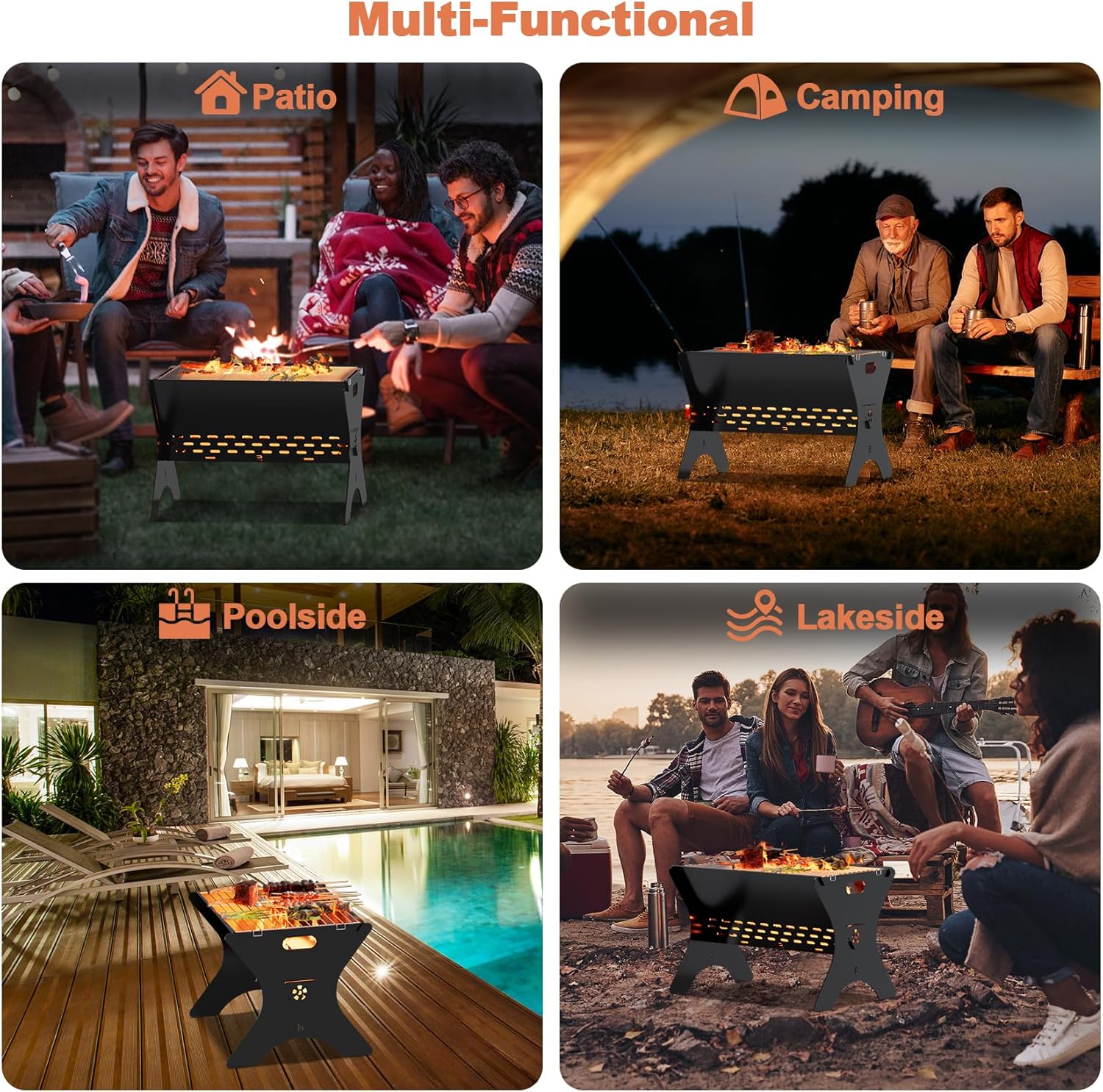 - Multiple Uses If you are an outdoor person then this grill is a must have, this multi-scenario charcoal grill can be used as outdoor fire pit, BBQ grill, bonfire pit, perfect for backyard, camping, bonfire, campfire, outdoor entertaining, beach, parties. Ideal gift for your friends or family.