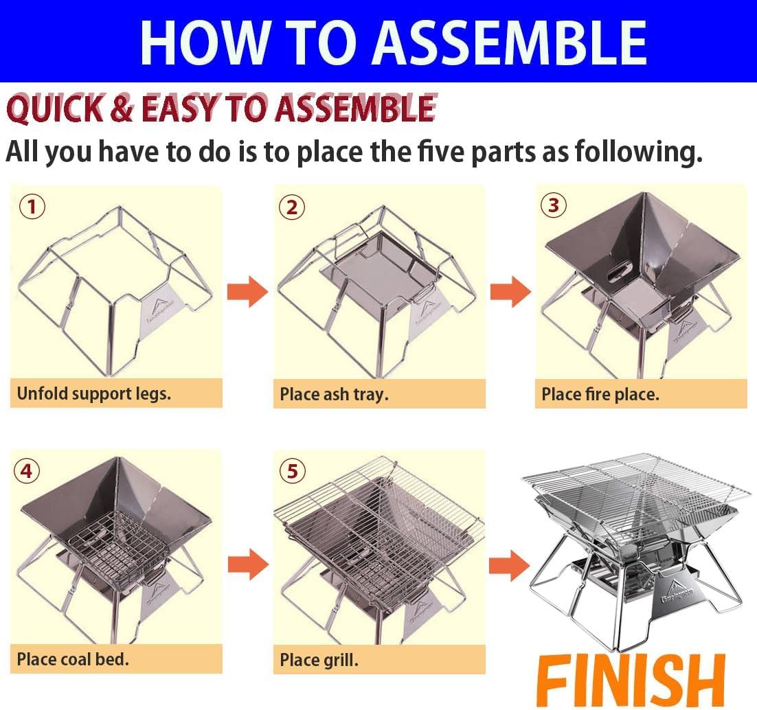 - This foldable camping grill portable campfire grill also has an ash catcher plate below the grill, which makes this camping charcoal grill very easy to clean.