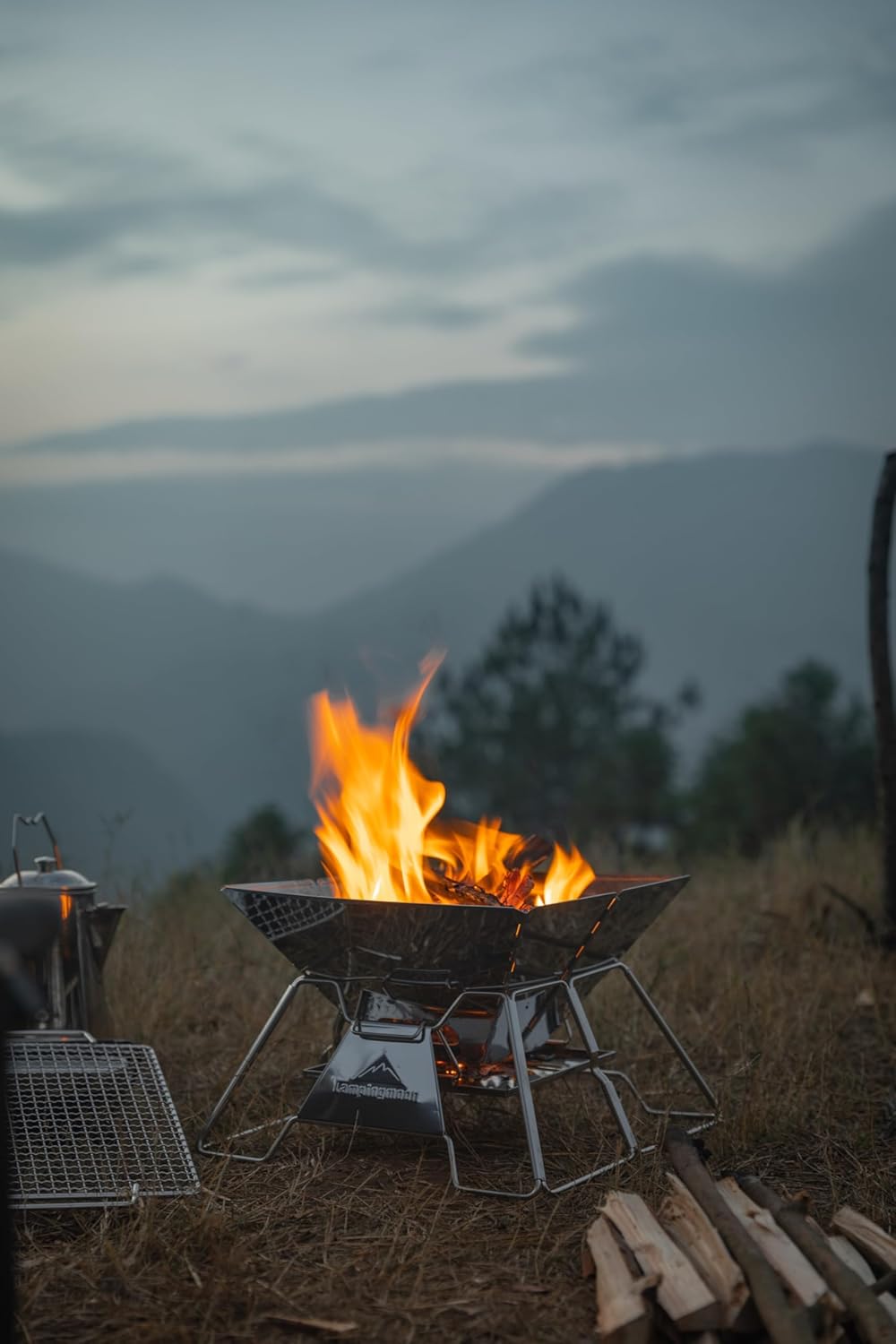 - ★Portable camping grill wood burning charcoal grill/stove/fire pit, easy to set up. This stainless steel grill has a stable flame but lightweight. Very convenient for barbecue, camping, beach, RV camping and other outdoor occasions.