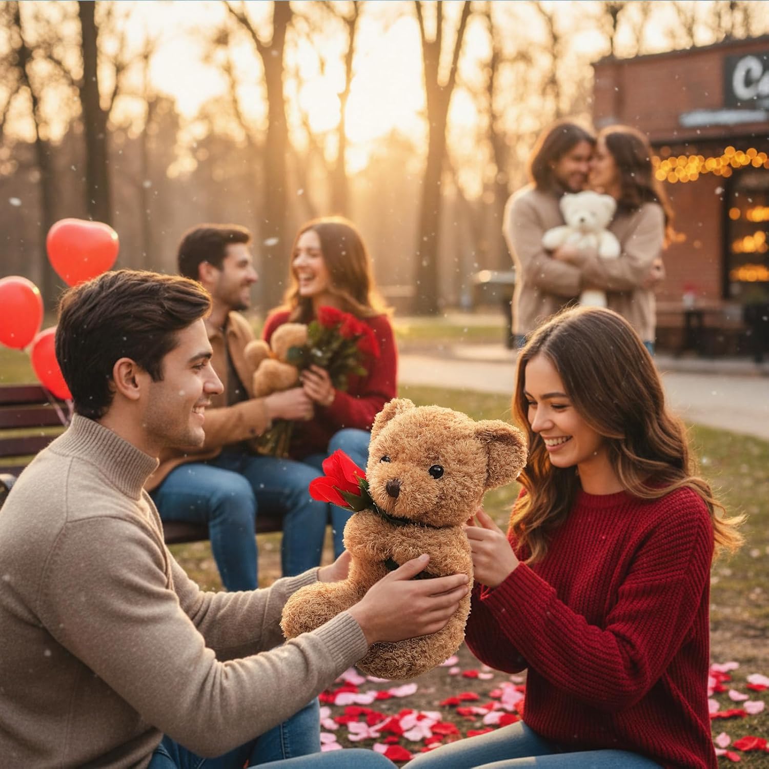 Cute Design: This Valentine’s bear features a quiet and charming design, holding a rose. With elegant details and bright eyes, it’s an adorable plush for couples or as a personal keepsake.