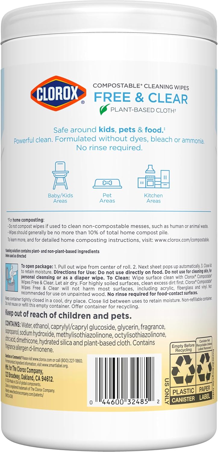 Clorox Free & Clear Cleaning Wipes – Lemon Scent