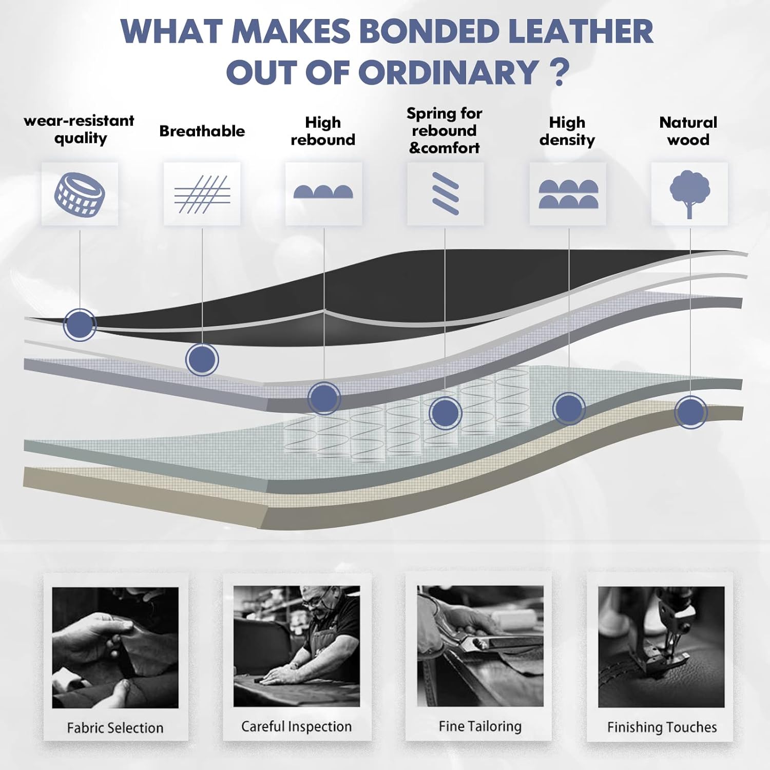 - BONDED LEATHER CHAIR, DESIGN FOR THE COMFORT Not all artificial leather is created equally. This executive desk chair is upholstered in bonded leather that is resistant to scratches, stains, peeling, and cracking. With upholstered armrests and an elegant design look, this computer chair will complement your home or office perfectly.