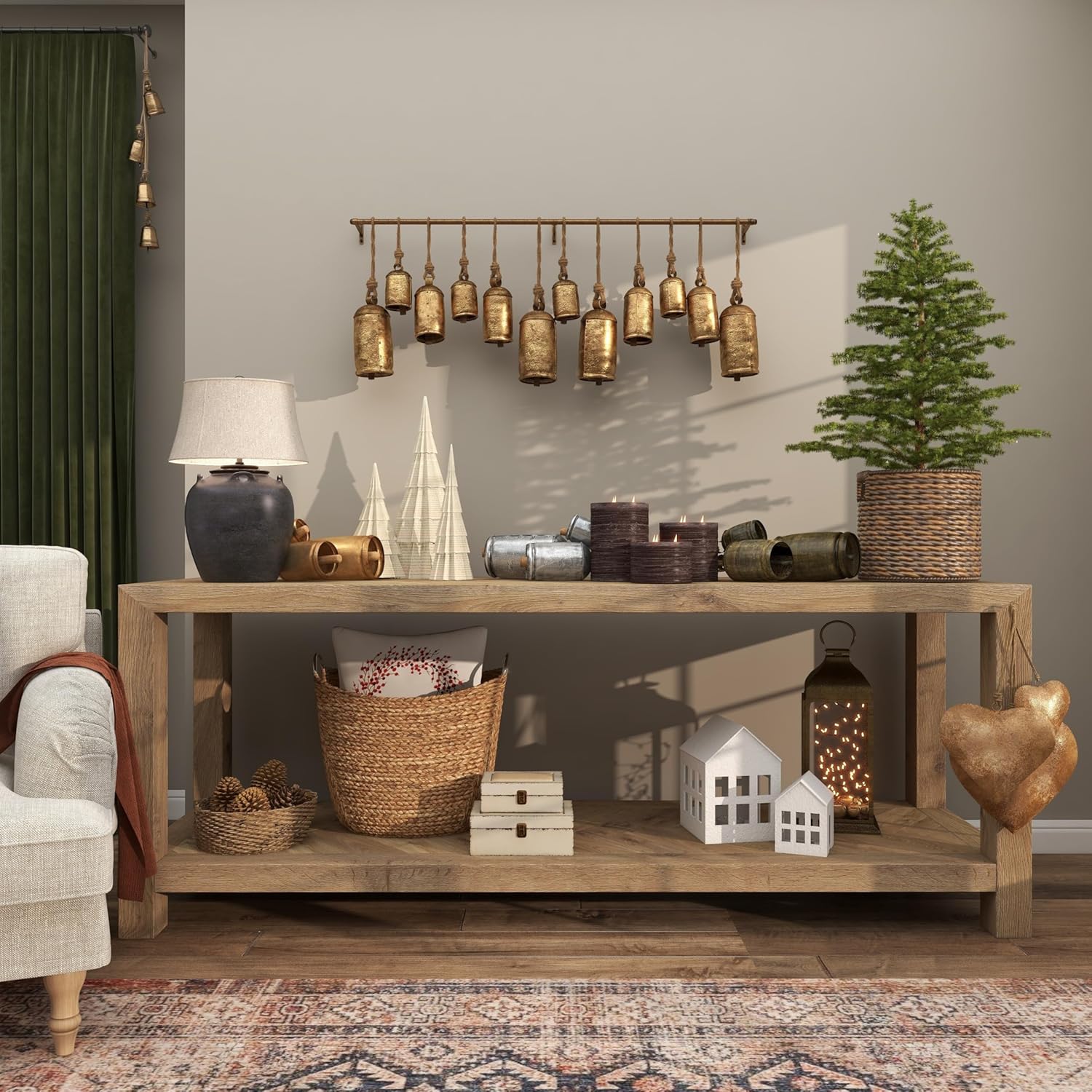 Deco 79 Metal Handmade Tibetan Inspired Decorative Cow Bells with 4 Bells on Jute Hanging Rope, 4" x 3" x 29", Gold