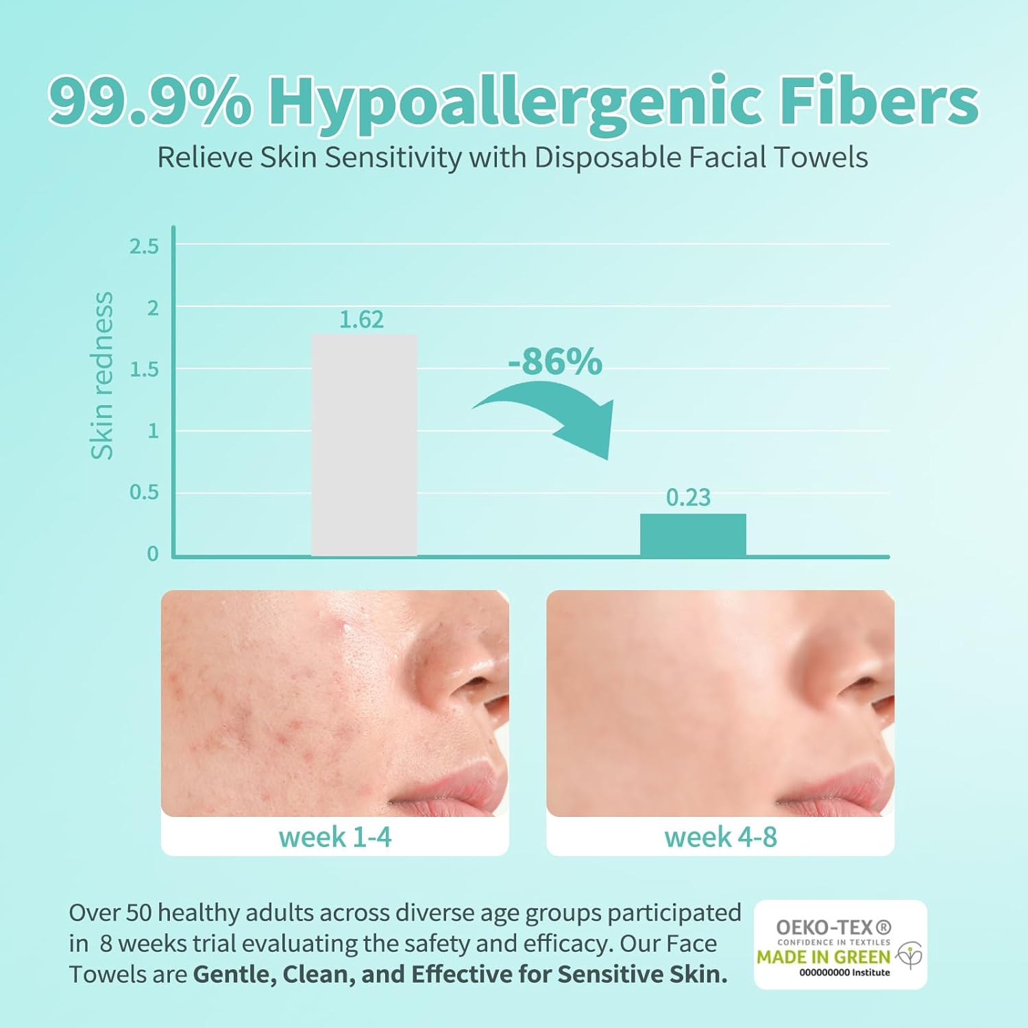 Plant-Based & Eco-Friendly: Disposable face towel made of natural plant fiber. They are biodegradable, plastic-free, and free of harmful chemicals (no formaldehyde, fragrance or fluorescent agents). Safe for the environment and sensitive skin. Stay fresh on the go with our disposable facial towels!