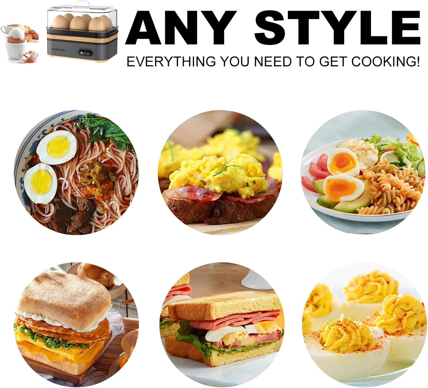- MULTI-FUNCTIONAL EGG COOKER: The Evo loop egg boiler is ideal for a busy solitary person or family to make hard-boiled eggs, soft-boiled eggs, poached eggs, deviled eggs, egg sandwiches, scrambled eggs, the ideal dish for any breakfast and special event