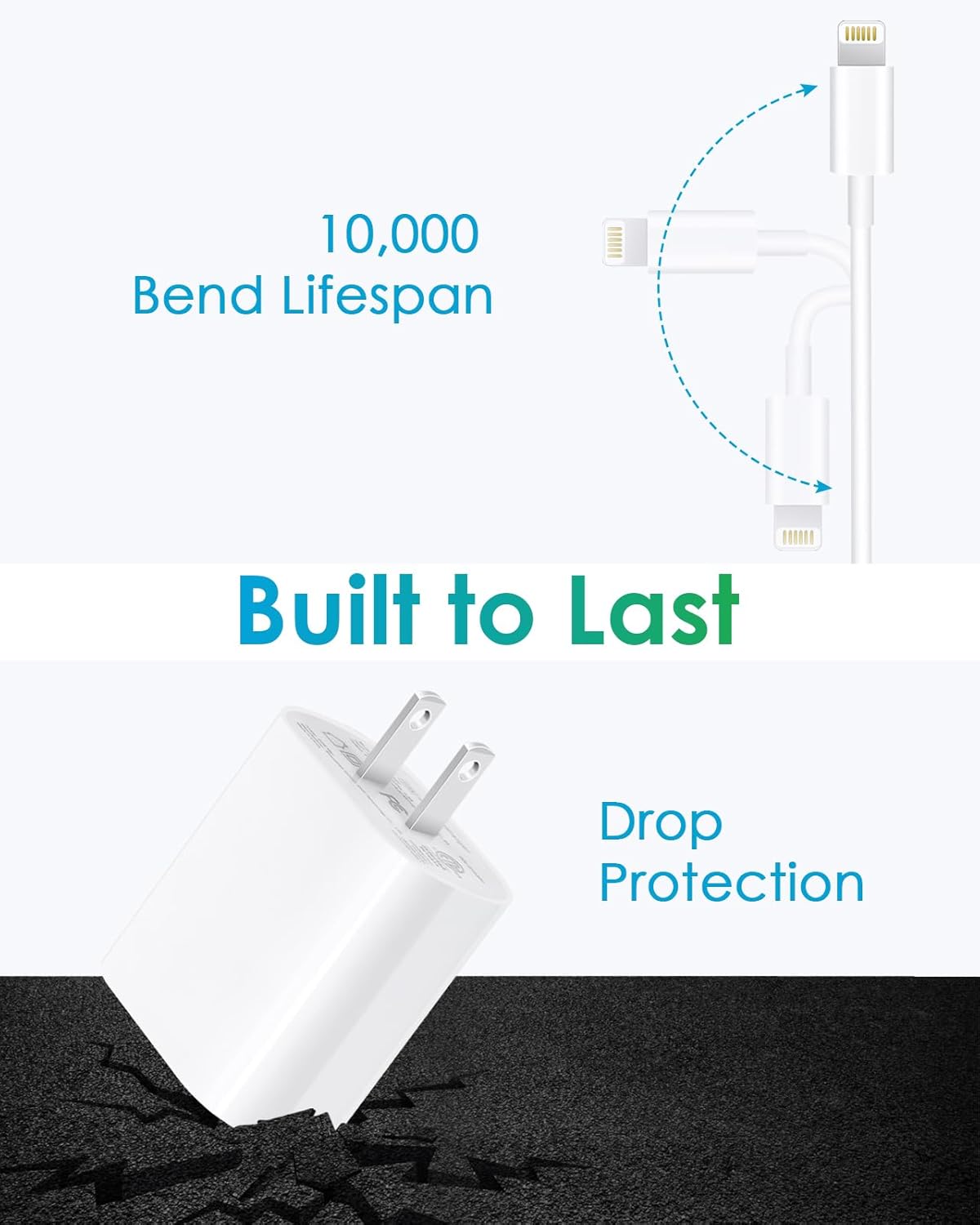 - SOLID AND DURABLE This charger block features a solid construction, and the fast-charging cable is lab-tested to withstand 10,000 bends. What's more, the charger cord's ends have an additional layer of protection to further enhance durability and prevent fraying.