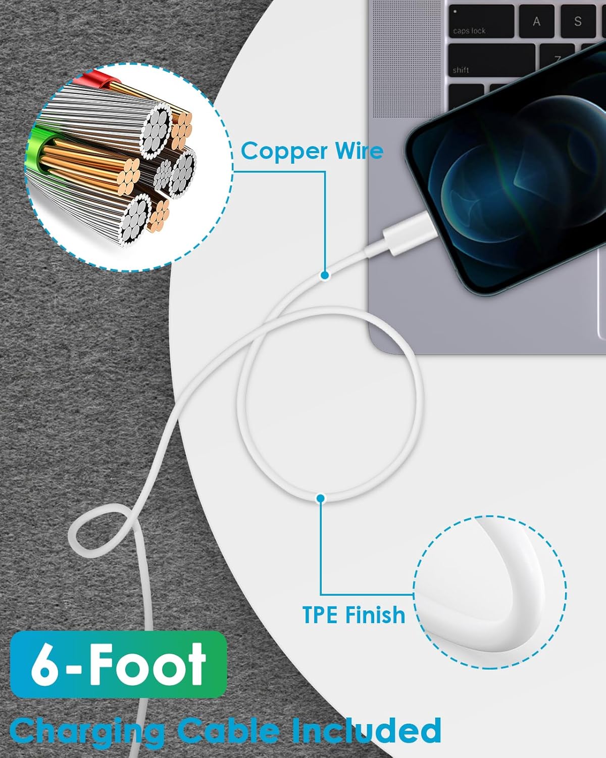 - 20W CHARGER & 6FT CABLE The charger block supports 20W charging, meaning you can charge your iP14 to 50% in just 30mins, and the 6ft charging cable gives all your outlets easy accessibility.