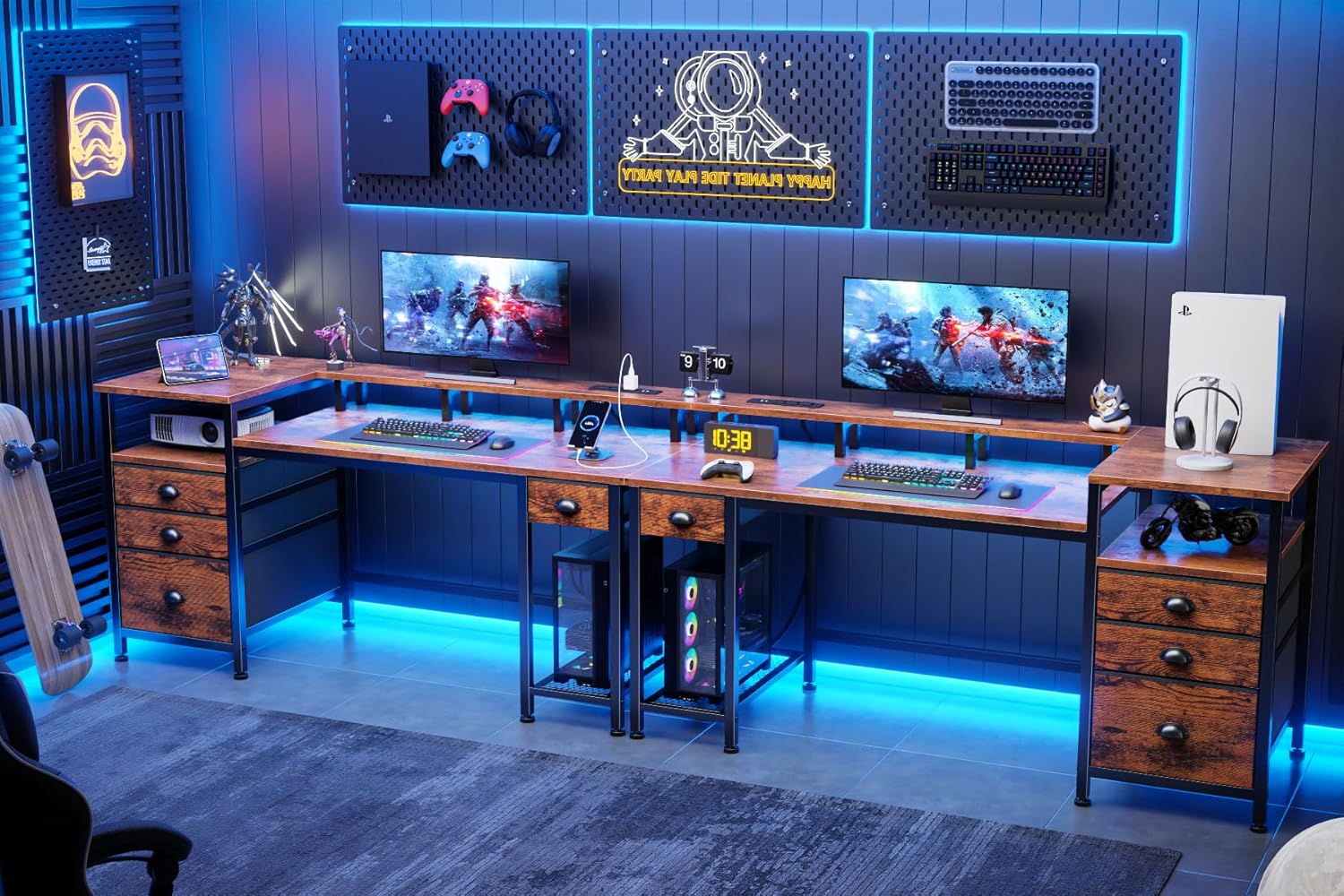 - Gaming Desk with LED Lights: Equipped with a built-in RGB LED lights strip, the led gaming desk provides 20 changeable colors, 22 dynamic modes, 5 adjustable brightness levels, and 10 flicker frequencies, create strong lights ambiance which provide different work or game scenarios.