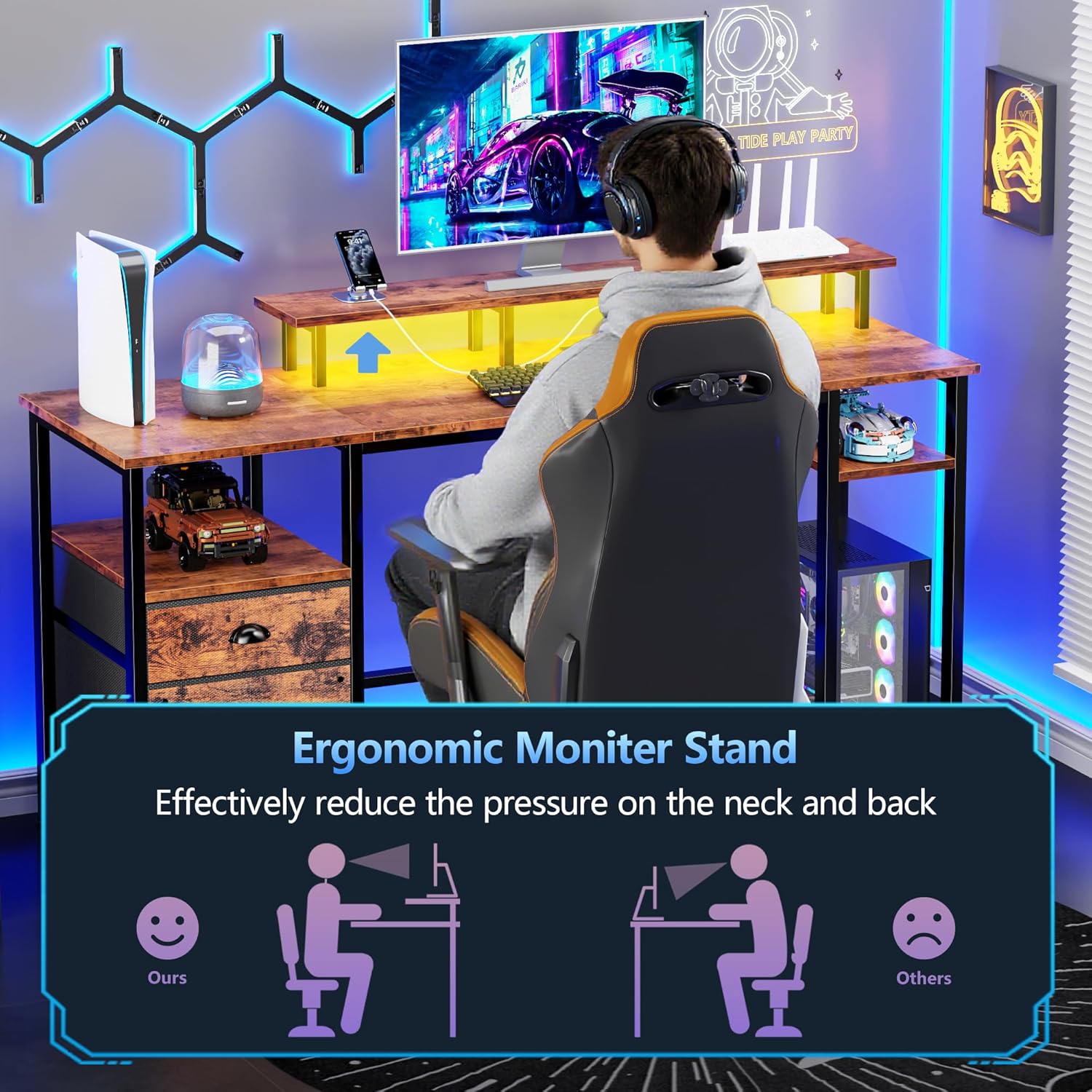- Gaming Desk with LED Lights: This gaming desk equipped with LED RGB lighting with 20 colors, 22 modes, 5 adjustable brightness levels, and 10 flicker frequencies. You can choose any mode and color to decorate your room, creating a cooler gaming atmosphere.