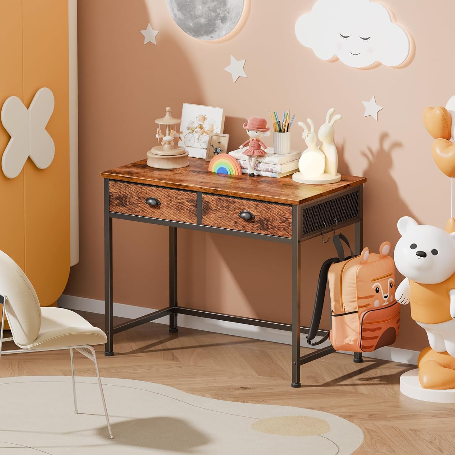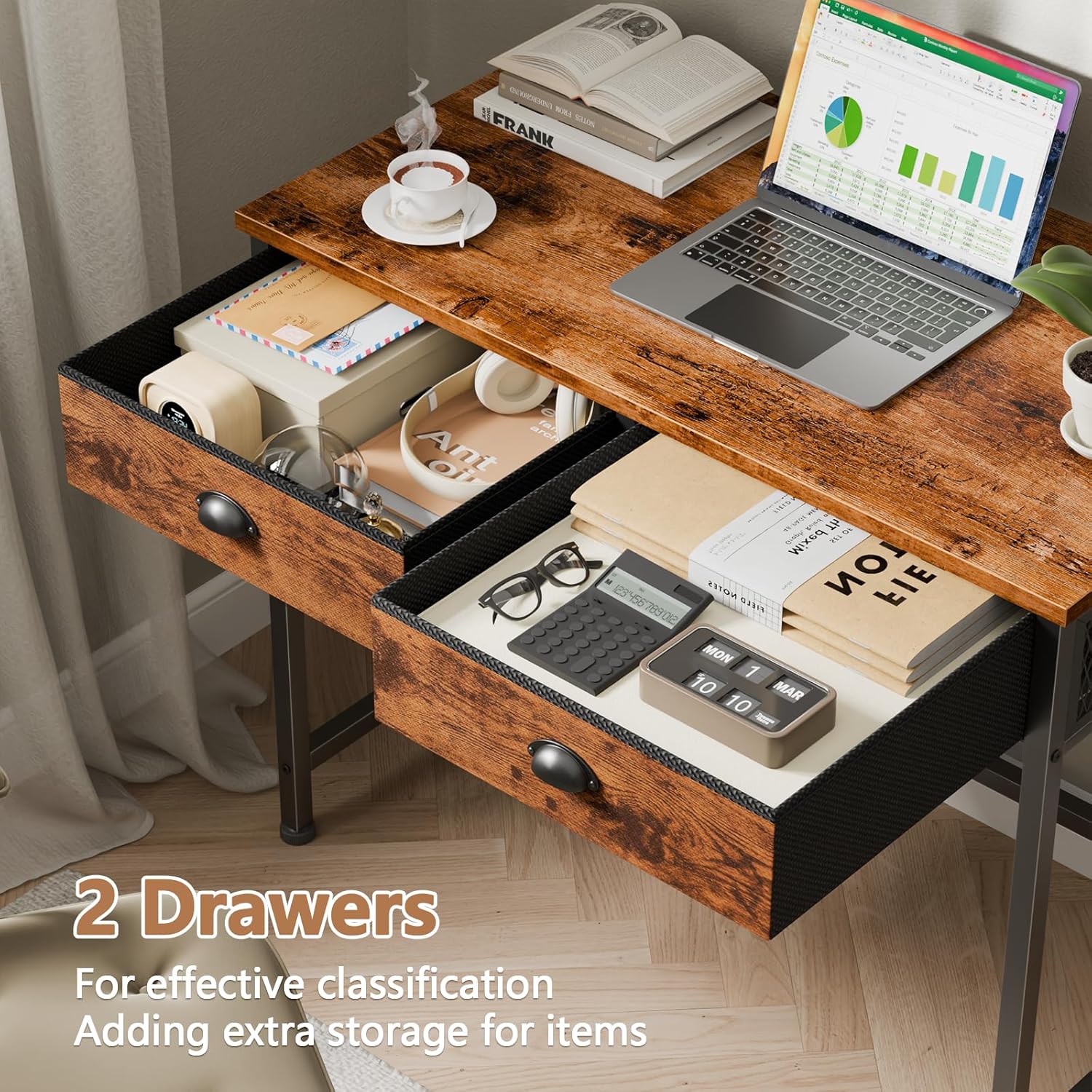 - Simple Office Desk with 2 Fabric Drawers: The drawers are made of non-woven fabrics(NOT WOOD DRAWER), its more convenient for assembling compared to traditional wooden drawers, it also can meet your storage needs, using your desktop space more freely.