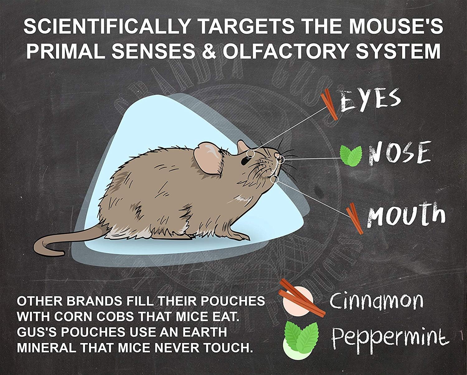 - Extra-strength formula. The hydro-water mix increases the peppermint repellent power and the cinnamon sting prevents mice from chewing. Creates a dry-spray barrier against rodent invasions. It leaves a fresh scent and acts as an air freshener. Works best indoors