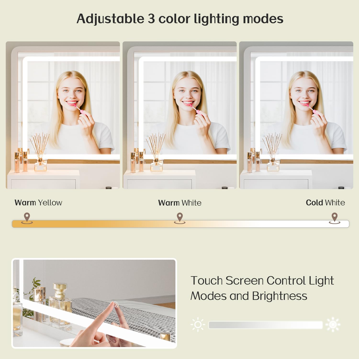 Haewon Vanity Desk with Mirror and LED Lights, White Makeup Vanity with Power Outlet, Storage Drawers and Chair, Dressing Table Set for Bedroom Dressing Room