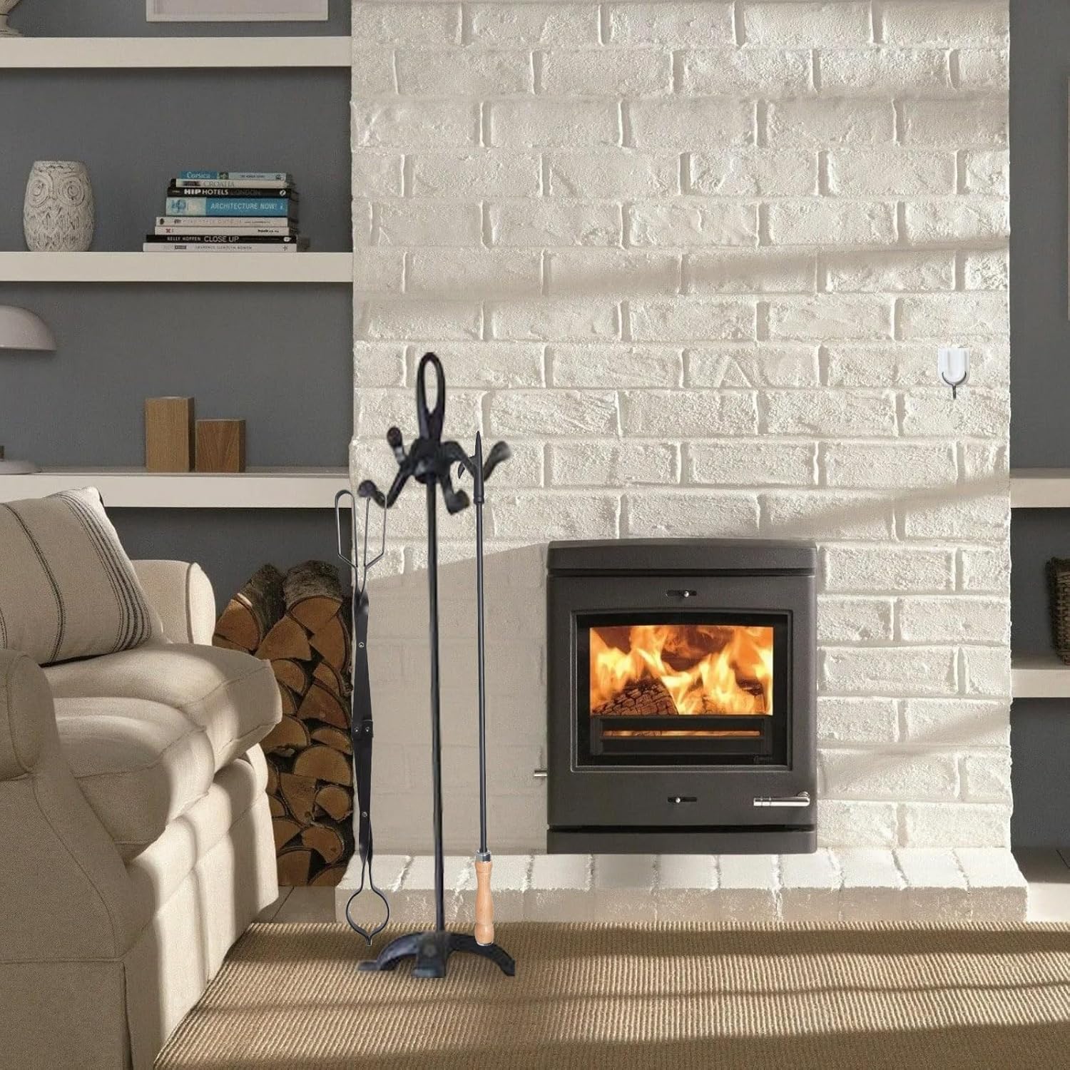 - Versatile Use Rust resistant finish for use outside. Whether you’re using an indoor wood fire, an outdoor fire pit, a wood burning stove, a boiler or even a smoke house, you’ll find these fireplace tongs incredibly useful.