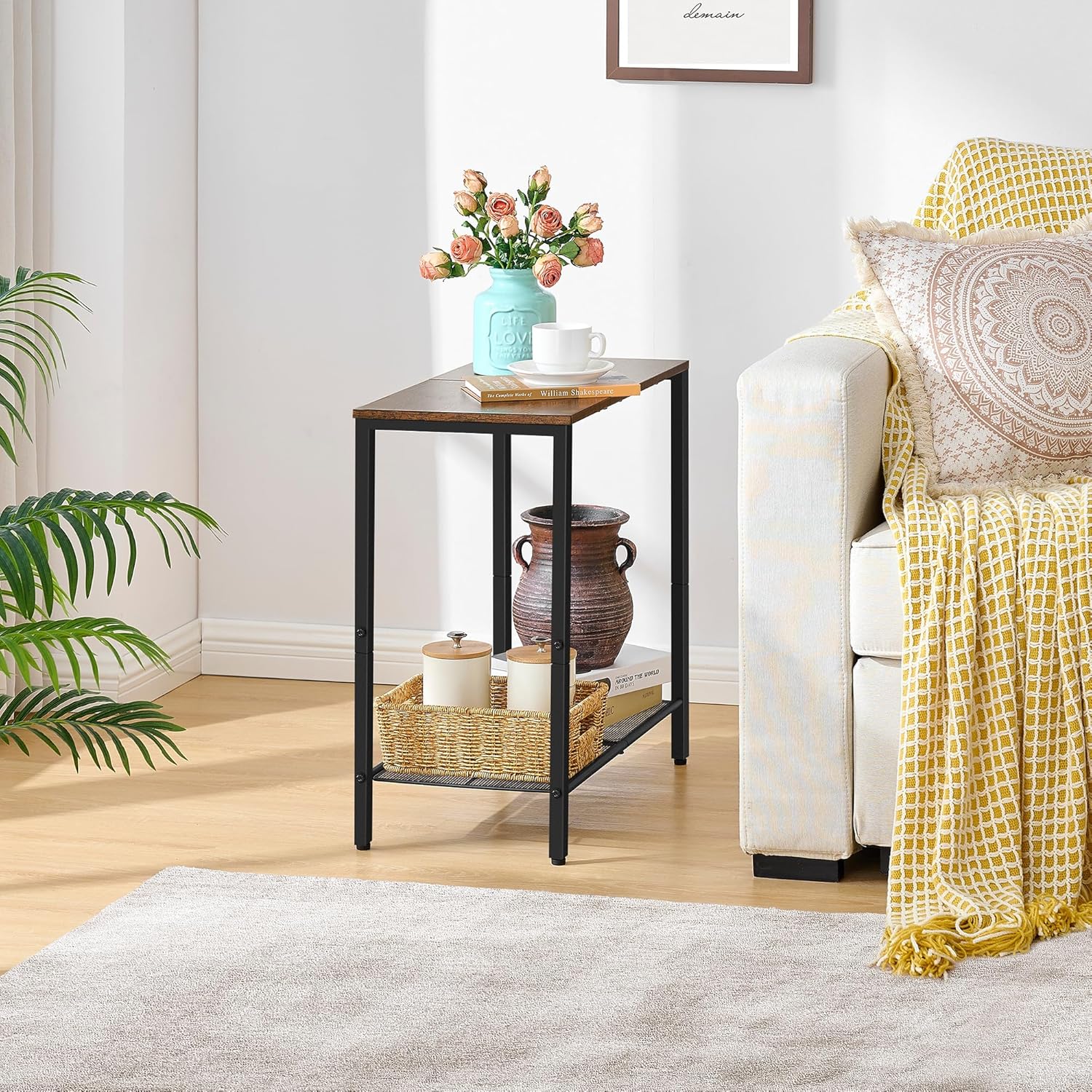 - More Practical The two levels of storage table can meet all your different needs. The open and smooth shelf at the top gives you enough storage space, you can just have a cup of coffee or tea and enjoy a short relaxation. The second level of the tabletop is used for storage and display, with enough space to store a basket in Oder to put more small things on.