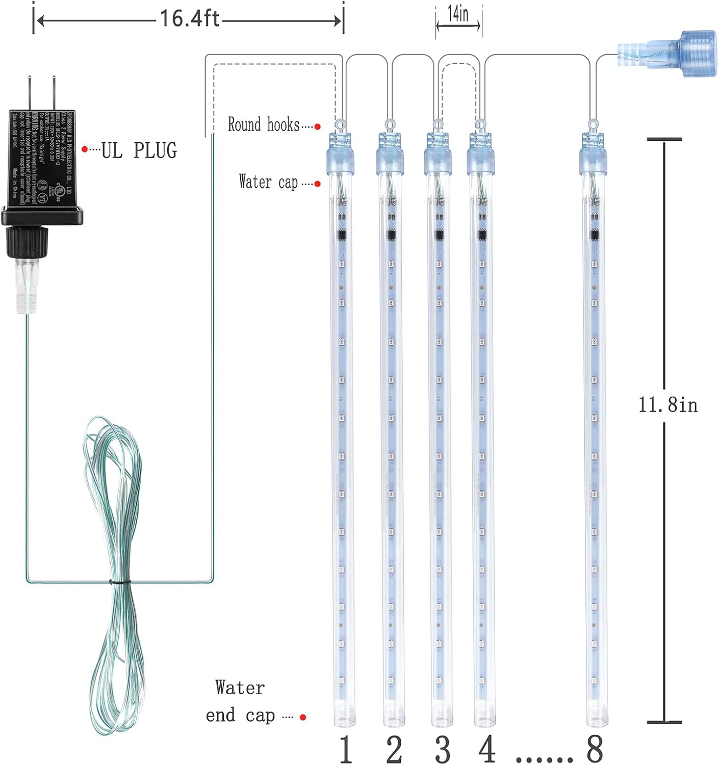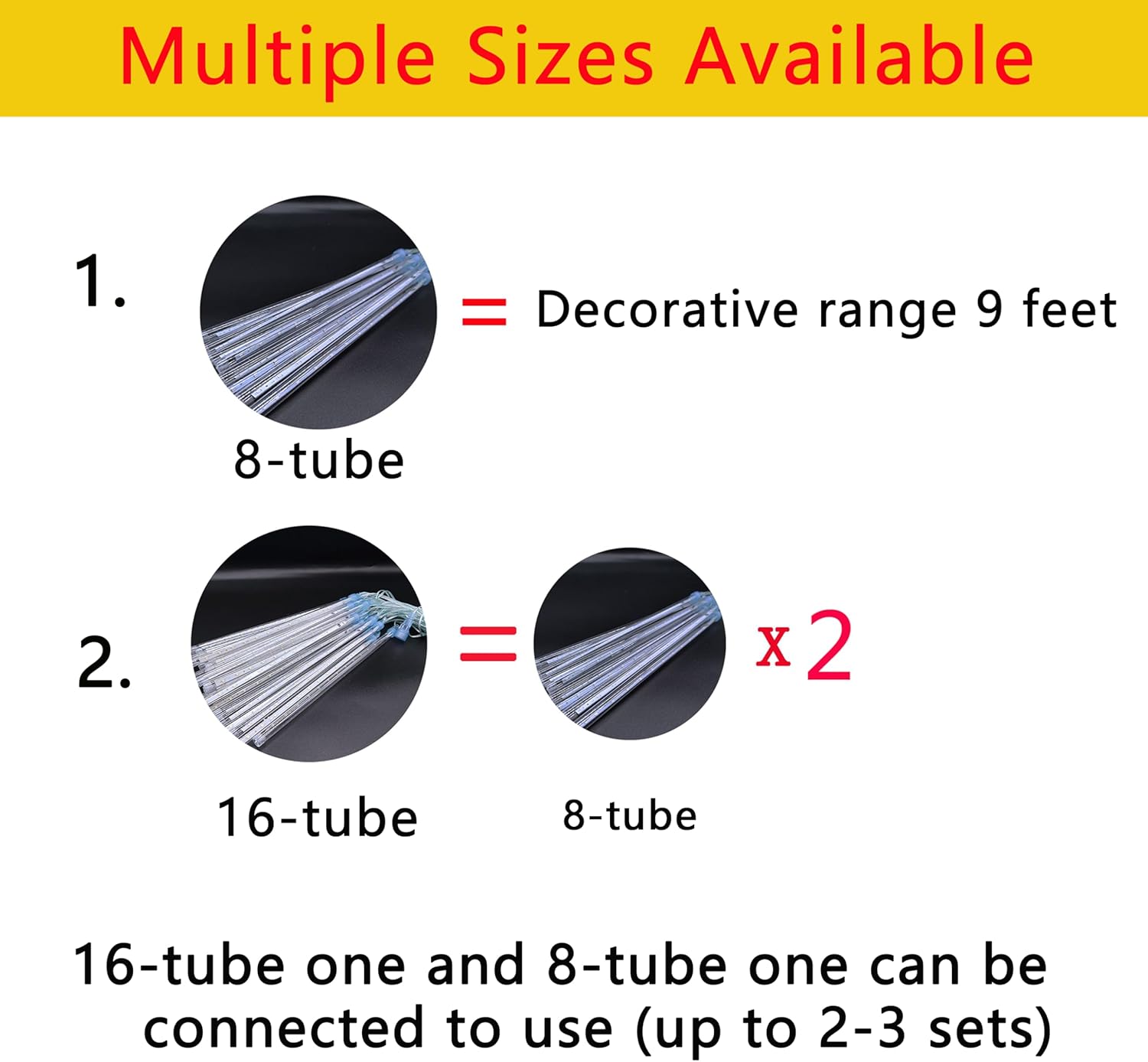- 【Romantic Meteor Shower Lights】Led falling rain drop lights, the light of every bulb turns on and out one by one in sequence and quickly just like meteor shower or falling snow in the night sky, very beautiful. These icicle string lights can be used as one or be connected (The best effect is to connect 3-4 strings).