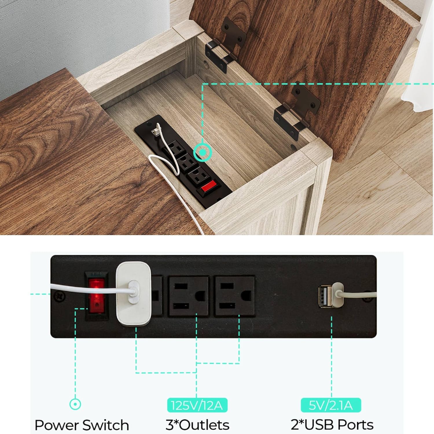 - End Table with Charging Station - Keep your devices charged and organized with this end table, featuring a safety switch, 3 outlets and 2 USB ports. Designed grooves from tabletop for easy use cables and keep desk neater