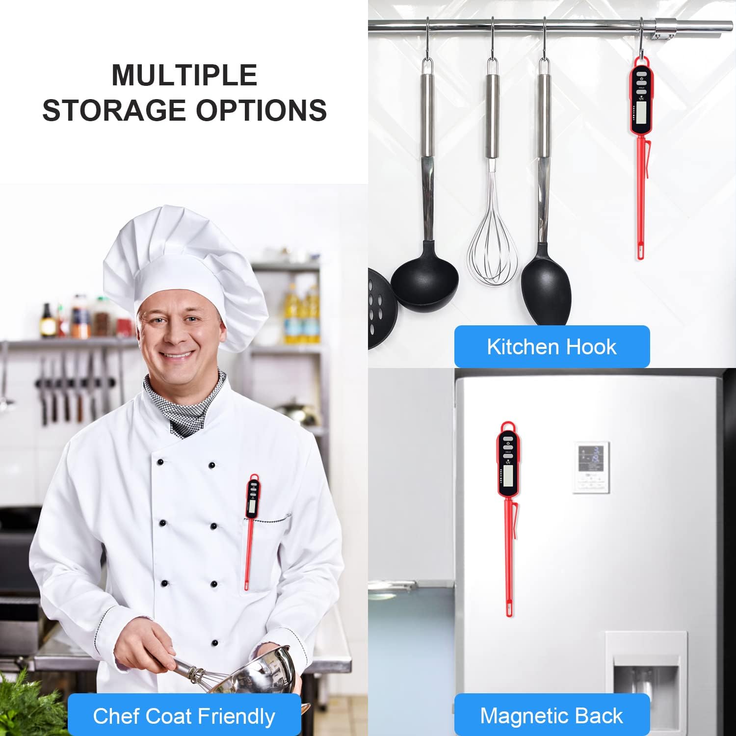 - WATERPROOF & LONG PROBE - Cooking thermometer with IPX6 rated waterproof, clean it freely under running water. Keep you away from hot food safely with 5.1-inch food grade long probe, pocket sleeve clip included