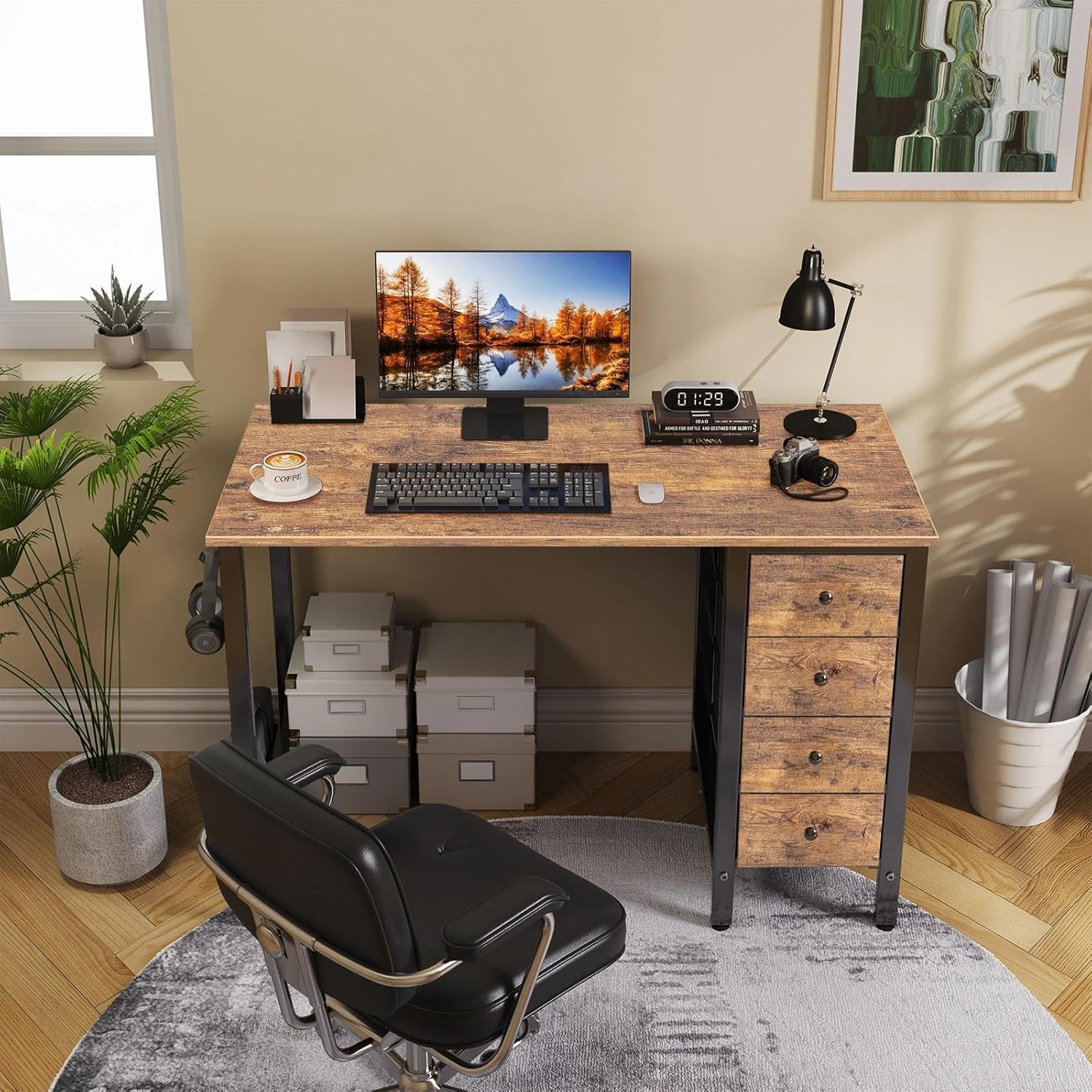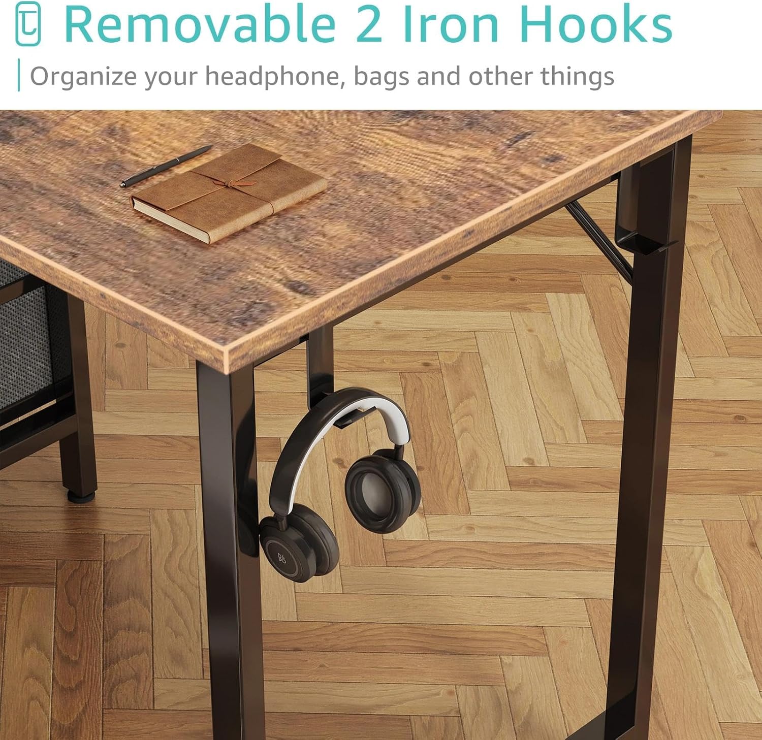 - Vintage Style Design: Computer desk with 4 ππππ§ππ πΏπ§ππ¬ππ§π¨, you can try these two installation methods (left or right). This desk is made of thick P2 particle wood board with scratch-resistant, anti-collision and waterproof, protect home office desk surface from daily wear and tear, rustic brown desktop match black metal steel frame match most room decoration, cute desk suit small space.