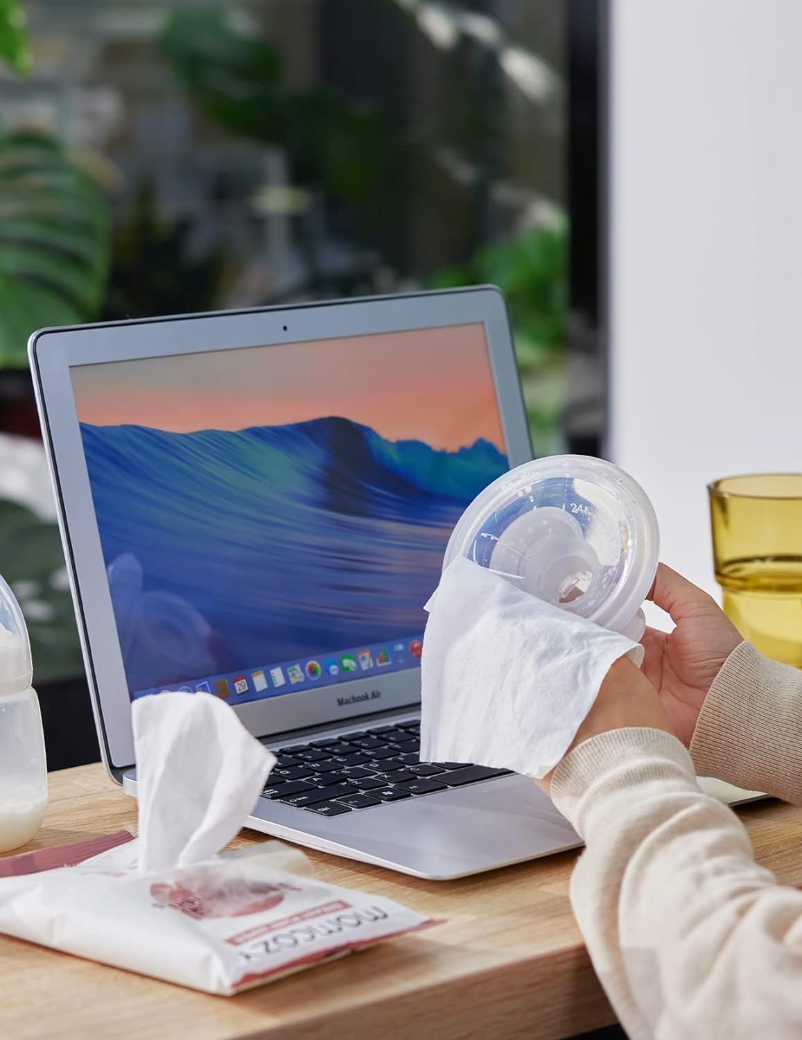 - Natural & Effective Cleaning – With grapefruit essence and baking soda, Momcozy breast pump wipes provide a refreshing and thorough clean.