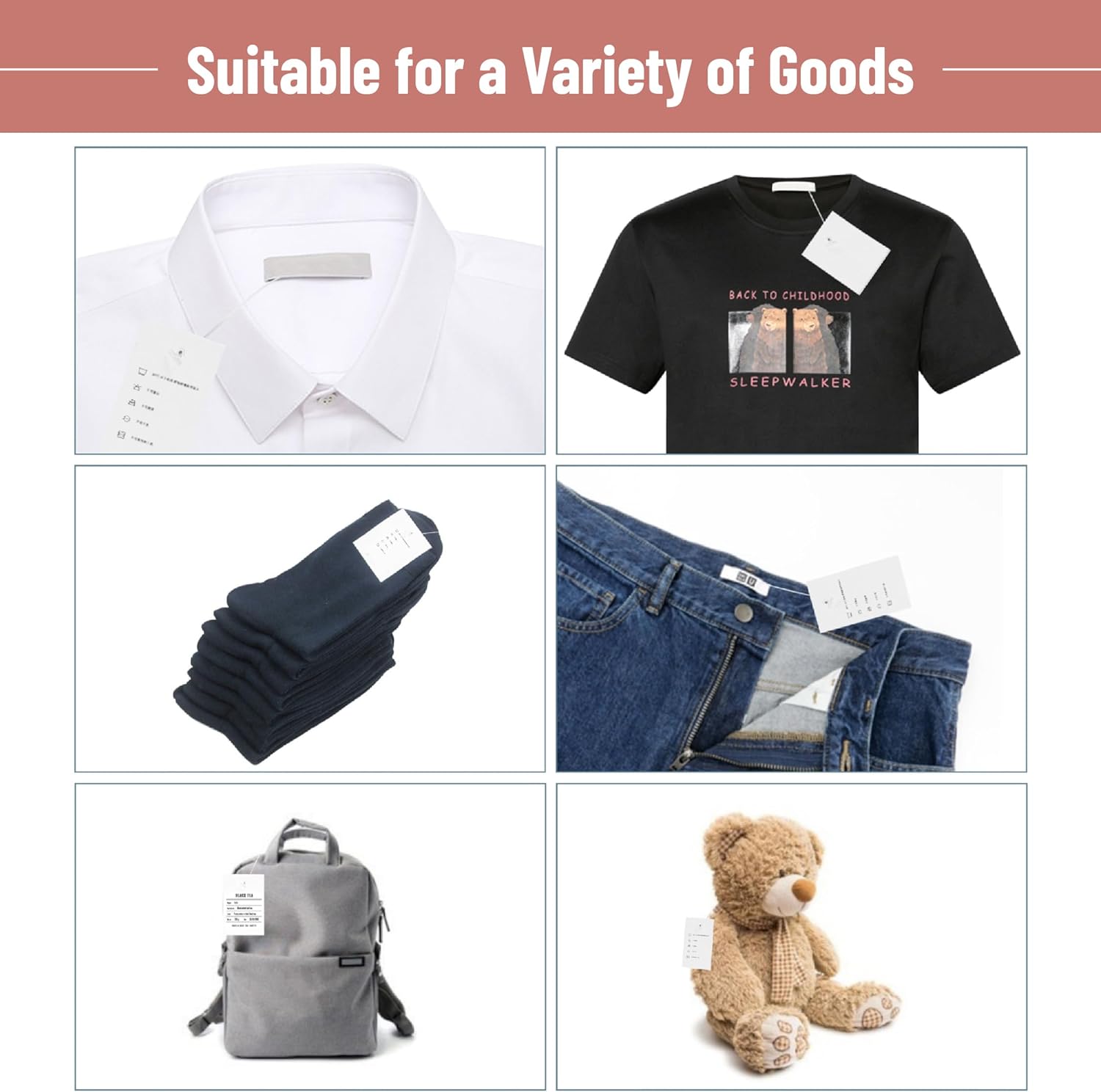 - It's a great tool for attaching cardboard, brand, and price labels to clothes, garments, toys, luggage, socks, bags, etc. Perfect for shops, boutiques, retailers, online sellers, garment factories.