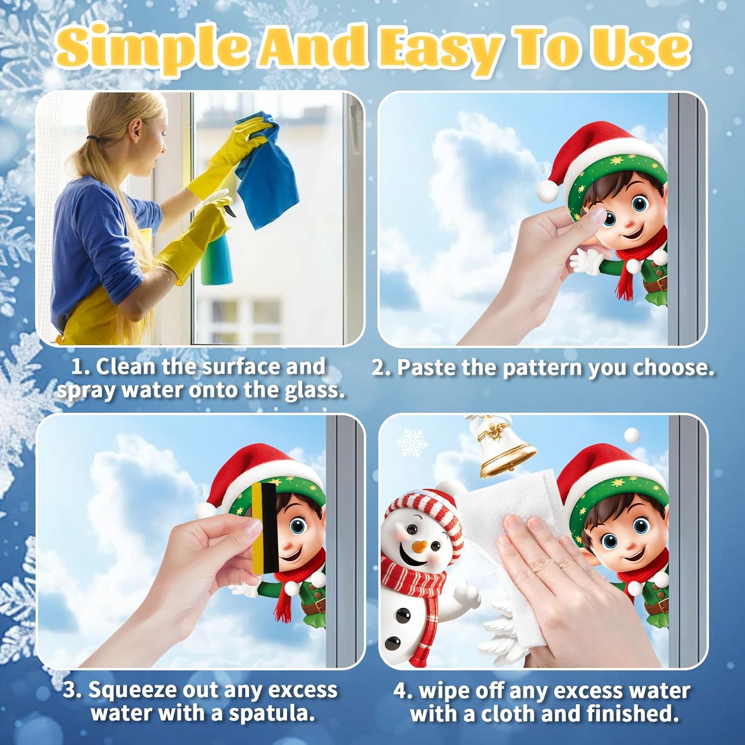 - EASY TO USE - No adhesive or glue is required! Simply clean the surface and spray with a little water before sticking. Our christmas window decals stick easily to the glass. If you encounter air bubbles, use a tool to smooth them out and ensure a perfect fit