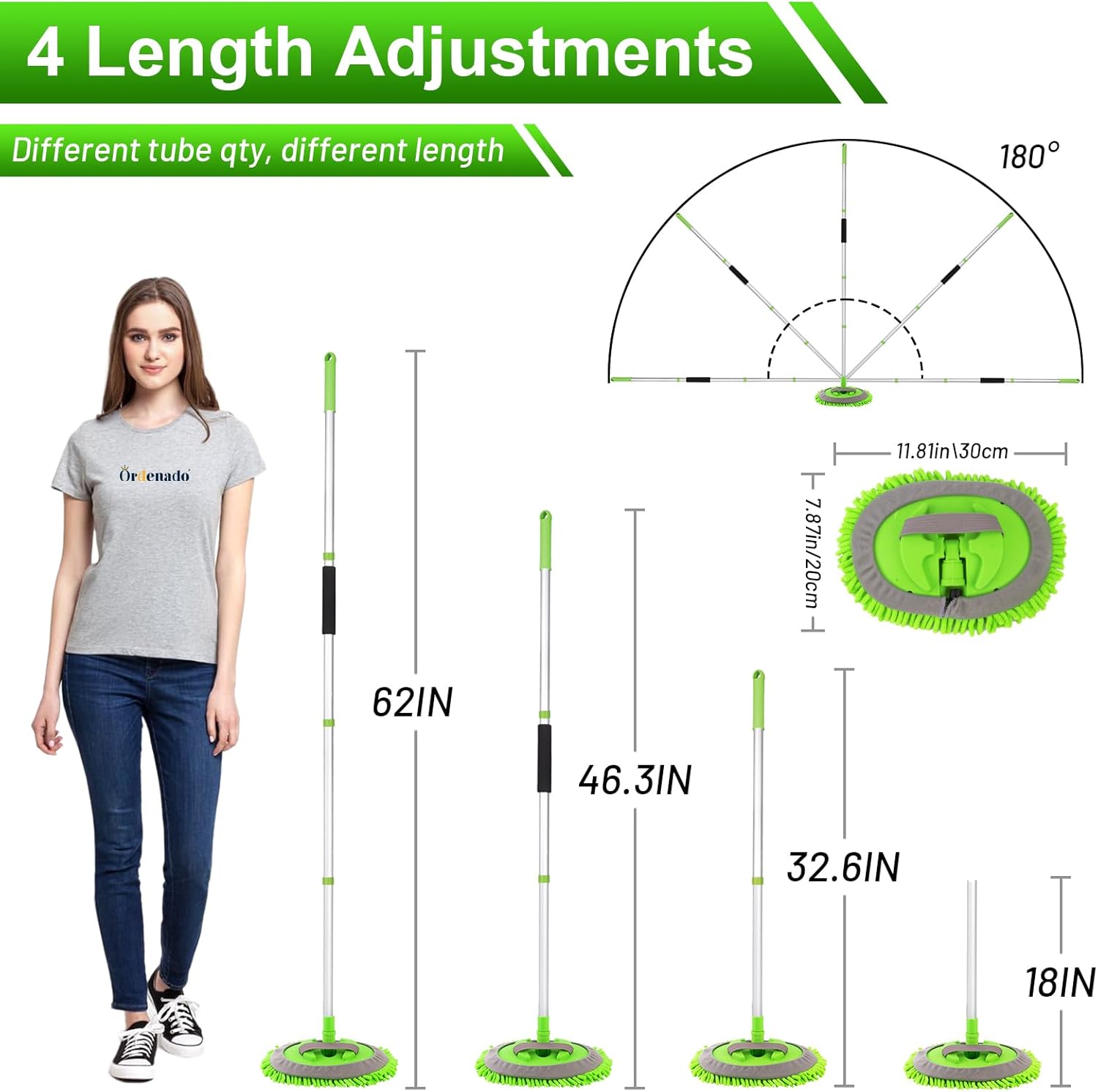 Ordenado 62" Car Wash Brush Kit Mitt Mop Sponge with Long Handle Chenille Microfiber Car Cleaning Brush Kit Supplies Car Washing Mop Kit Car Care Kit of Scratch-Free Replacement Head for Car RV Truck