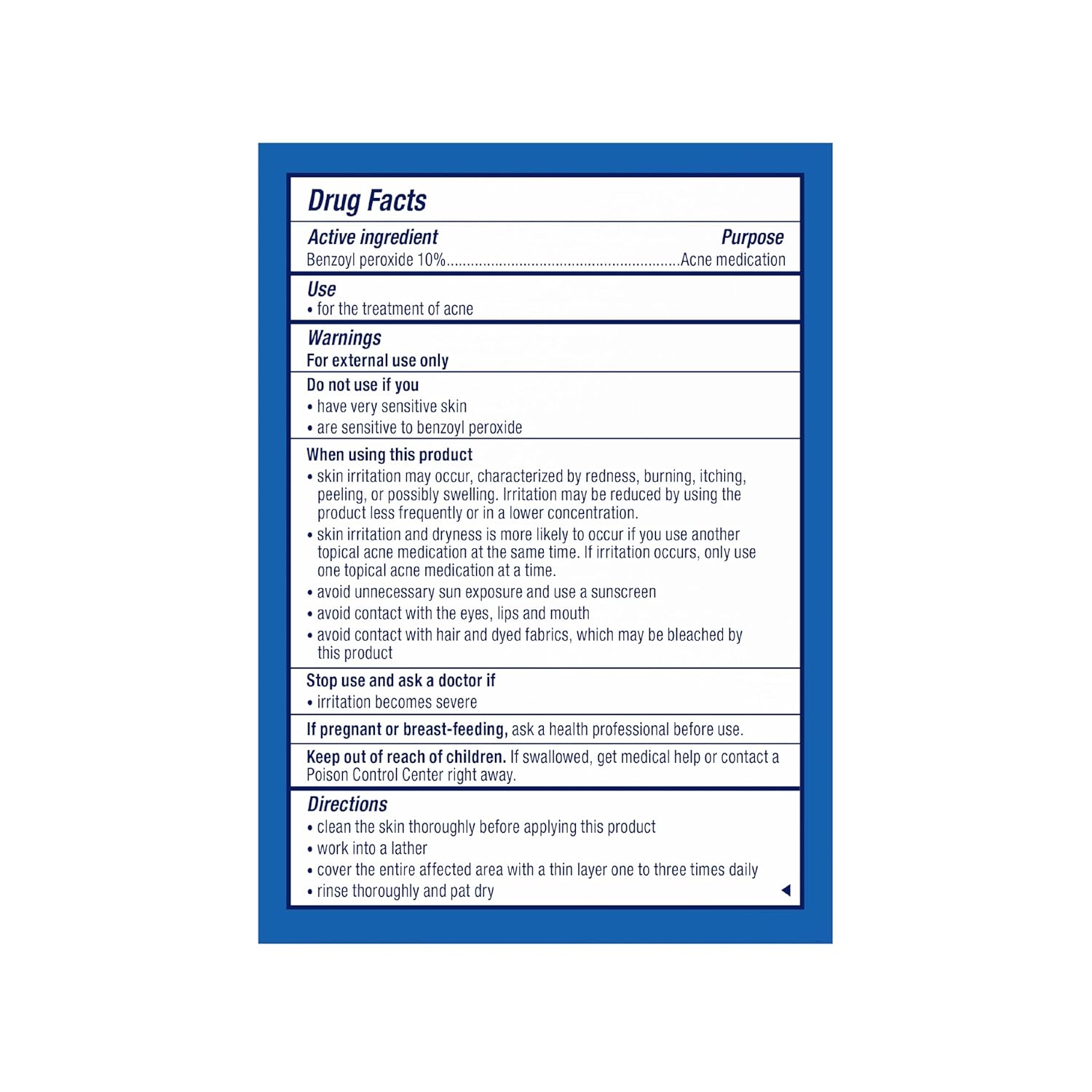 - Maximum strength – Contains 10% Benzoyl Peroxide, the highest concentration of this acne-fighting ingredient available without a prescription.