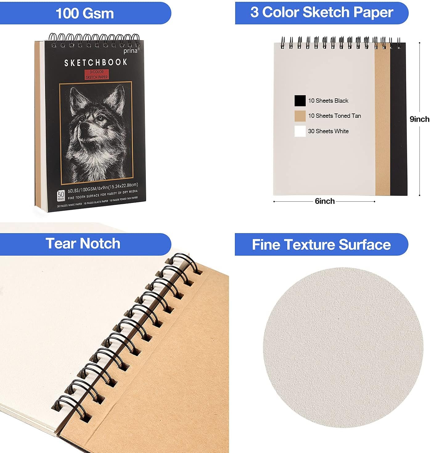 - 【Premium Drawing Set With Unique 3-Color Sketchbook】 6 x 9", 100GSM, 50 Pages (30 pages white, 10 pages toned tan, 10 pages black) , Different colors of sketch paper are suitable for different styles of drawing, one sketchbook can meet your needs for different colors of sketch paper, no need to spend more money to buy different colors of sketchbooks