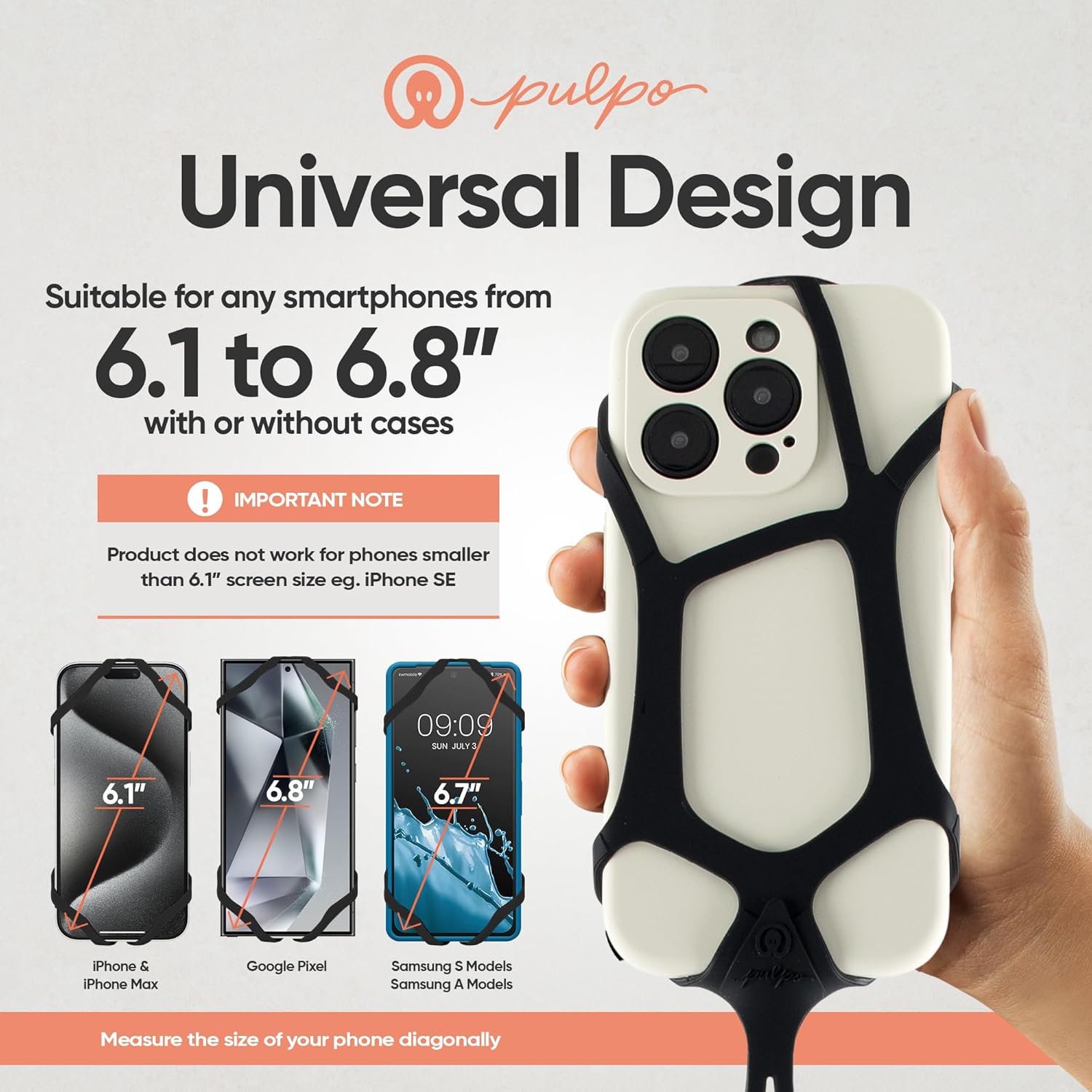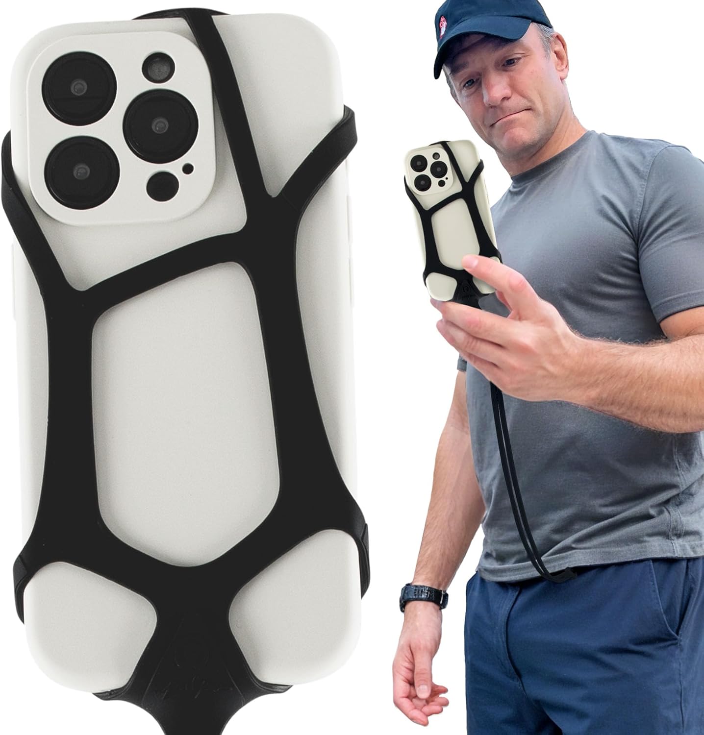 - FITS ALL SMARTPHONES FROM 6.1 UP TO 6.8 INCHES: Designed as a stretchable phone tether, our phone bungee cord and phone tether lanyard are ideal for any smartphone within this size range. Its heavy-duty phone lanyard feature makes it an ideal choice for a cell phone holder for jogging, biking, and hiking for travel safety. The phone security strap anti-theft ensures your phone remains secure, reinforced by an anti-phone theft strap and phone neck lanyard.