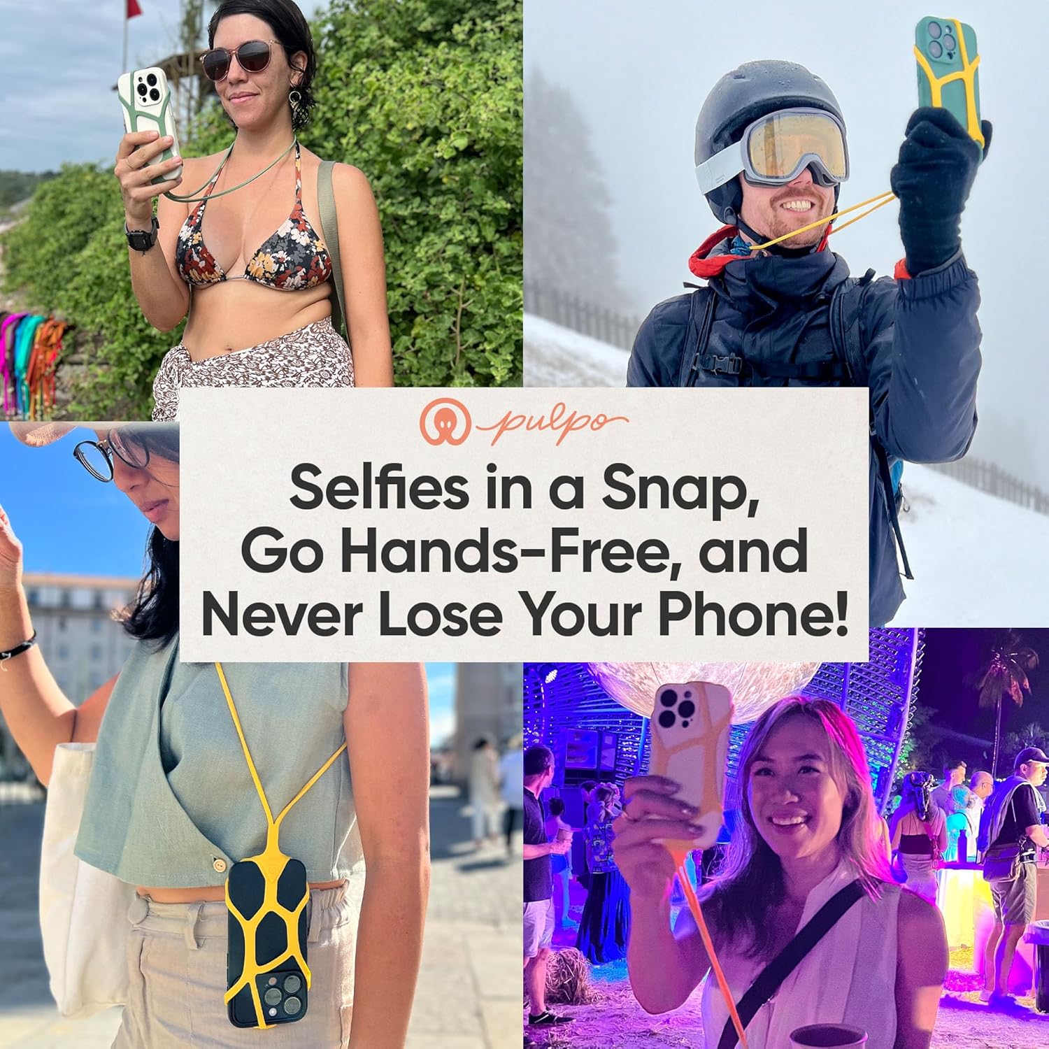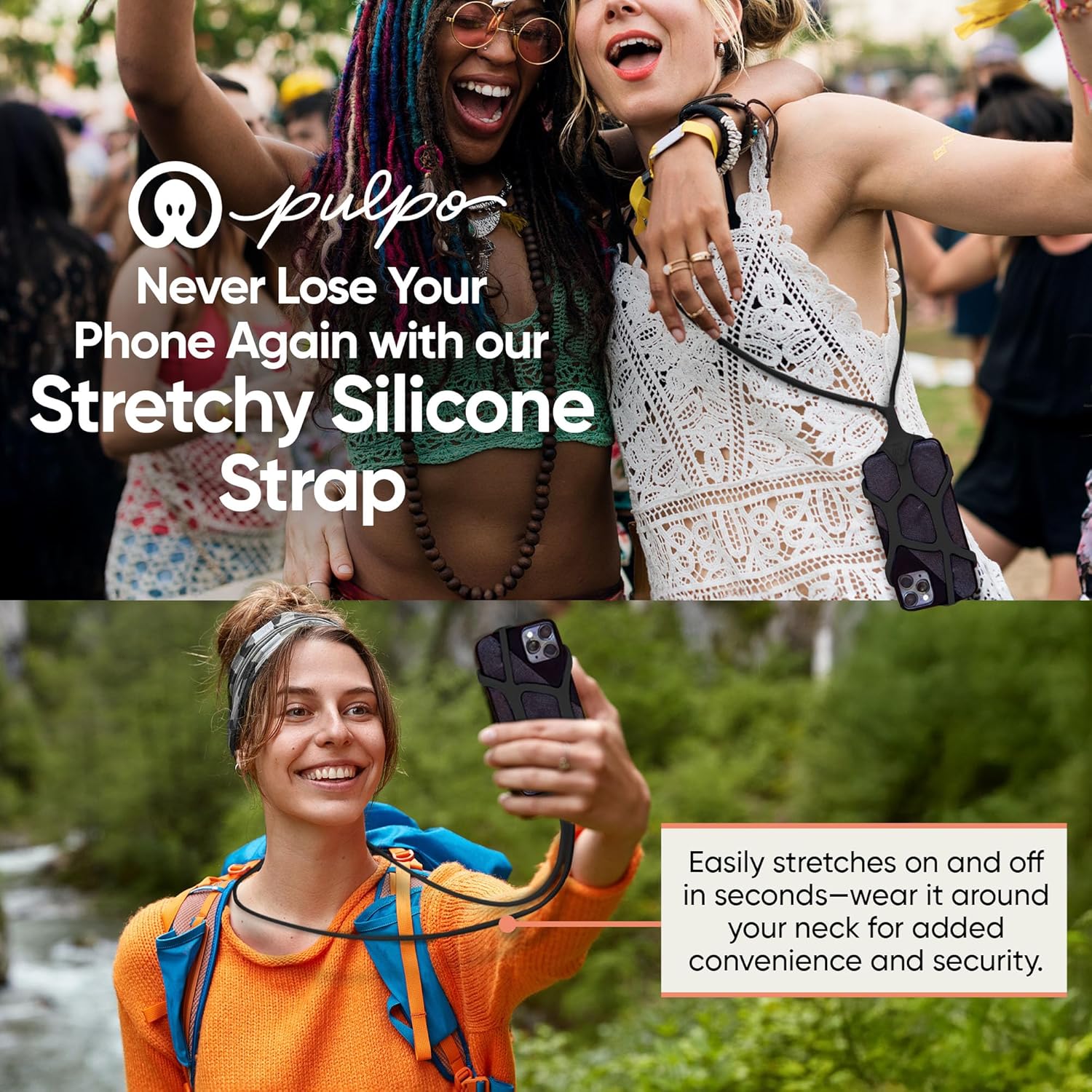 - QUICK ON & OFF WITH STAINLESS-STEEL CLIP: The Pulpo phone leash and travel phone holder is designed for effortless attachment and removal, allowing you to stay connected without hassle. Whether hiking, biking, kayaking, or commuting, our travel security accessories keep your phone secure and within reach, ensuring you never miss a moment while keeping it protected. The festival phone leash and harness features add versatility, making it a must-have for those who thrive on active lifestyles.