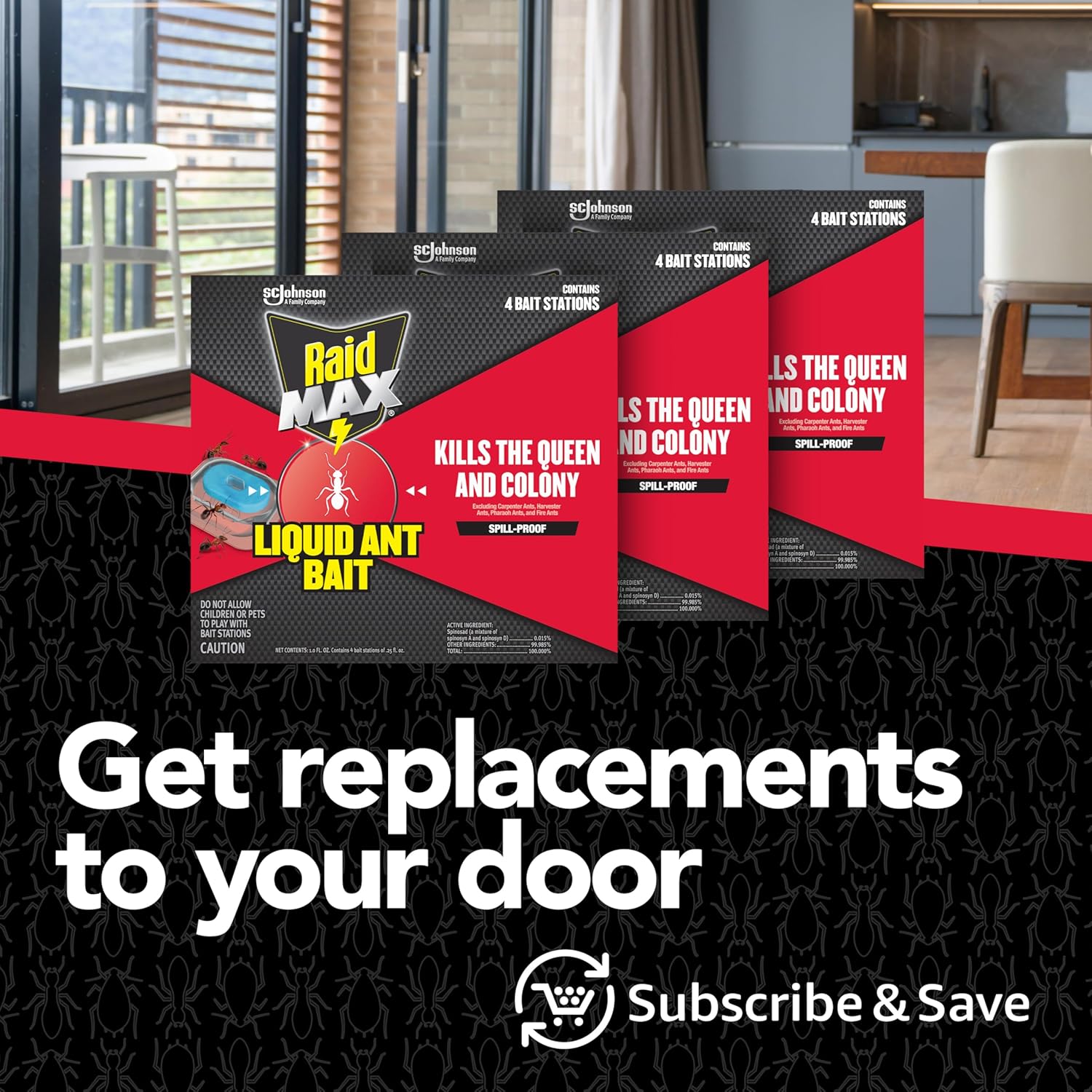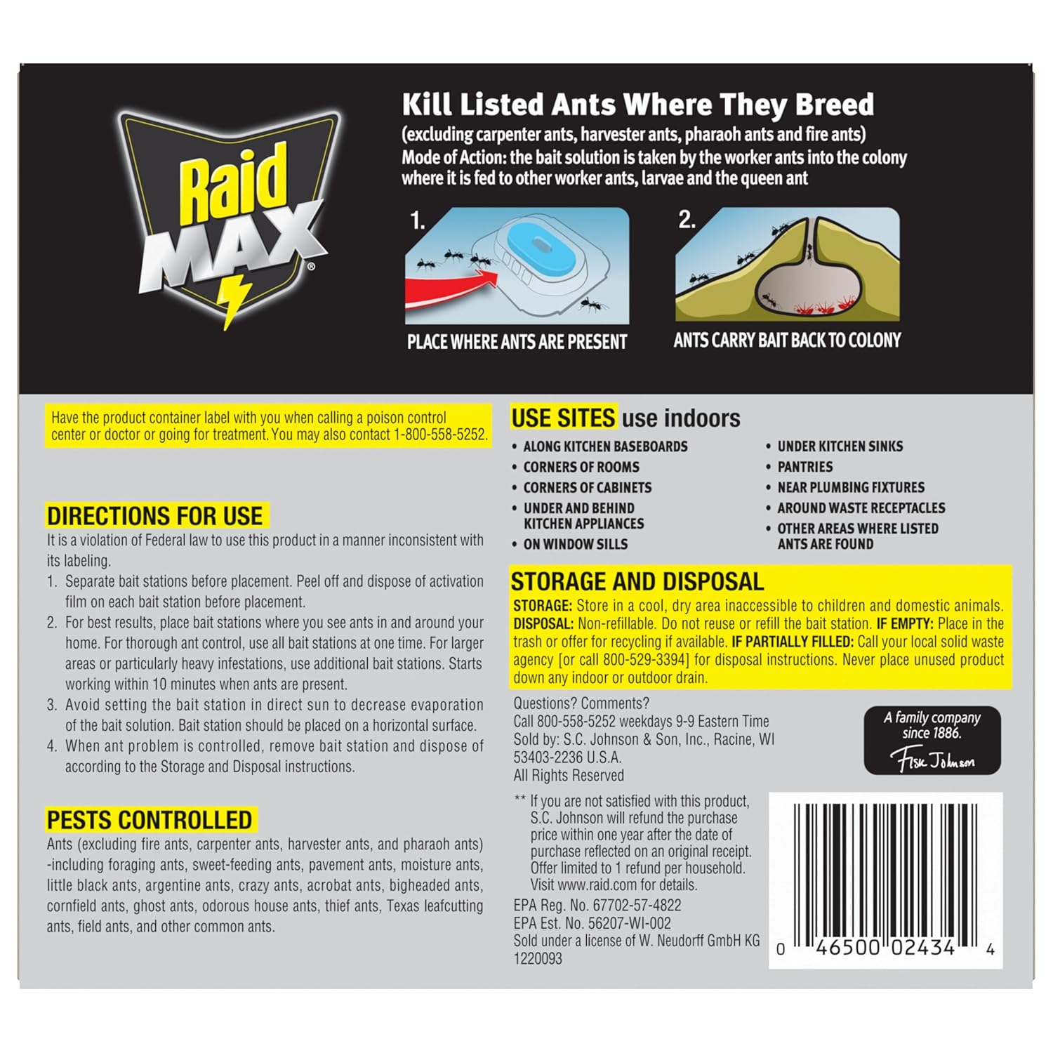 - Raid Max Liquid Ant Bait kills listed ants where they breed (excluding fire ants, carpenter ants, harvest ants and pharaoh ants)