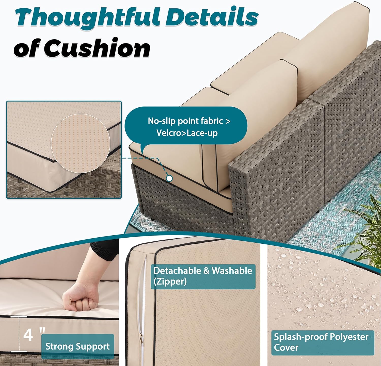 - Easy Cleaning: Fade-resistant cushions for easy rinse. Simply zip off the machine washable cushion covers and give them a quick wash to have them look brand new. Notice: please remove your cushions on rainy days since the inner sponge is not waterproof.