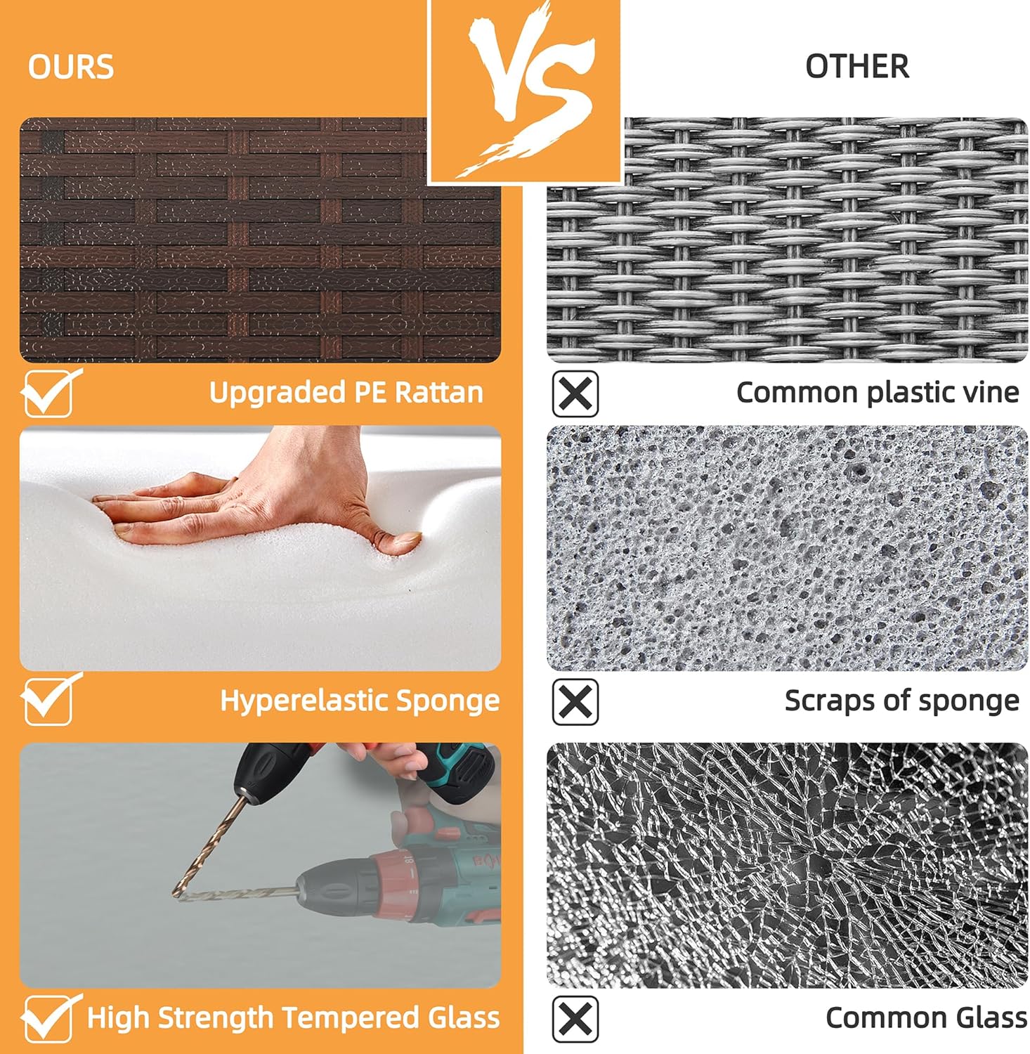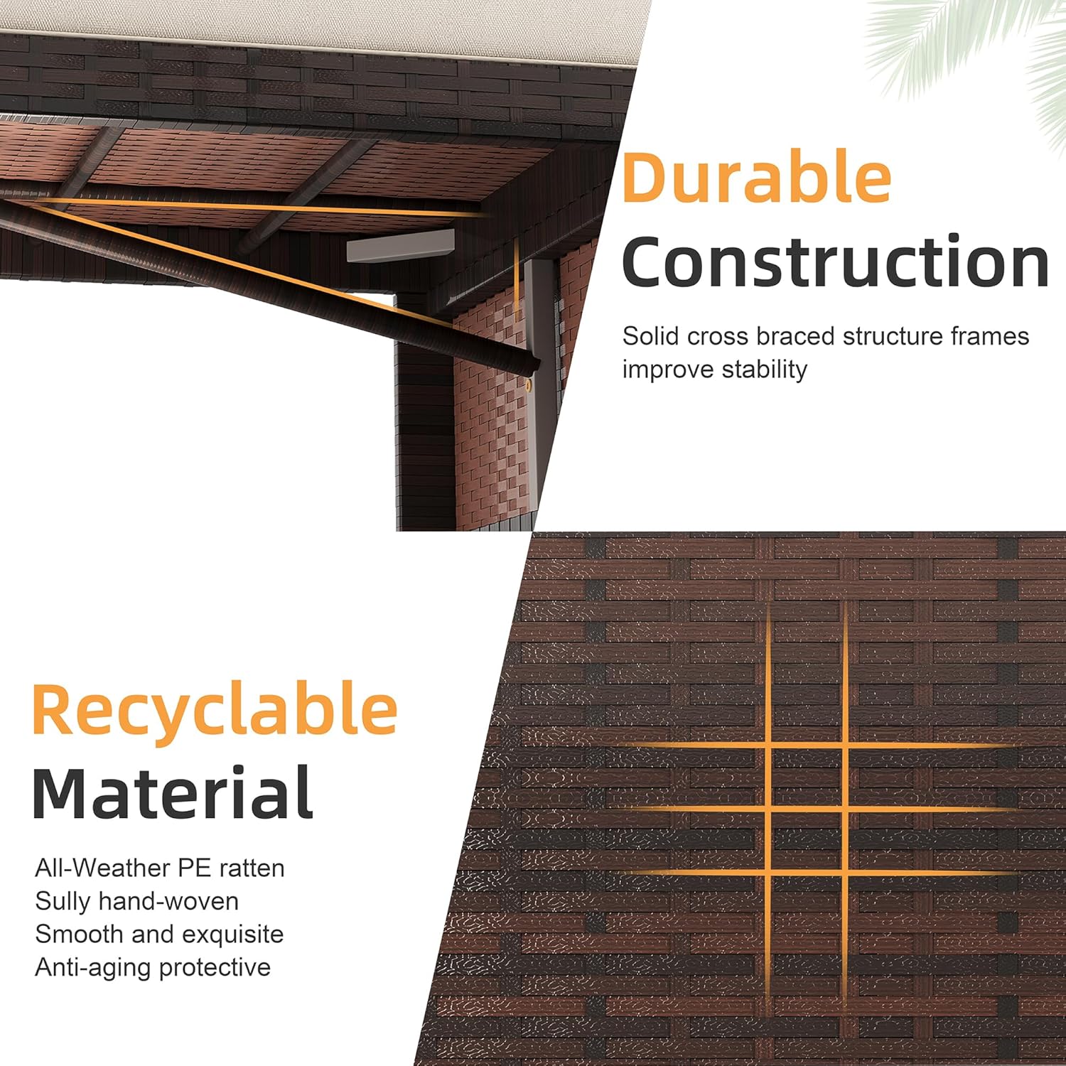 - Sturdy Long-lasting Patio Furniture: Solid metal structure make it super safe to sit in the sofa set. Added strong steel for the frame enhance the sturdiness and allow the sofa to support heavy people about 400lbs. PE Wicker rattan is strong enough to survive inclement weather and guarantee the Patio Furniture Sets has a long service life.