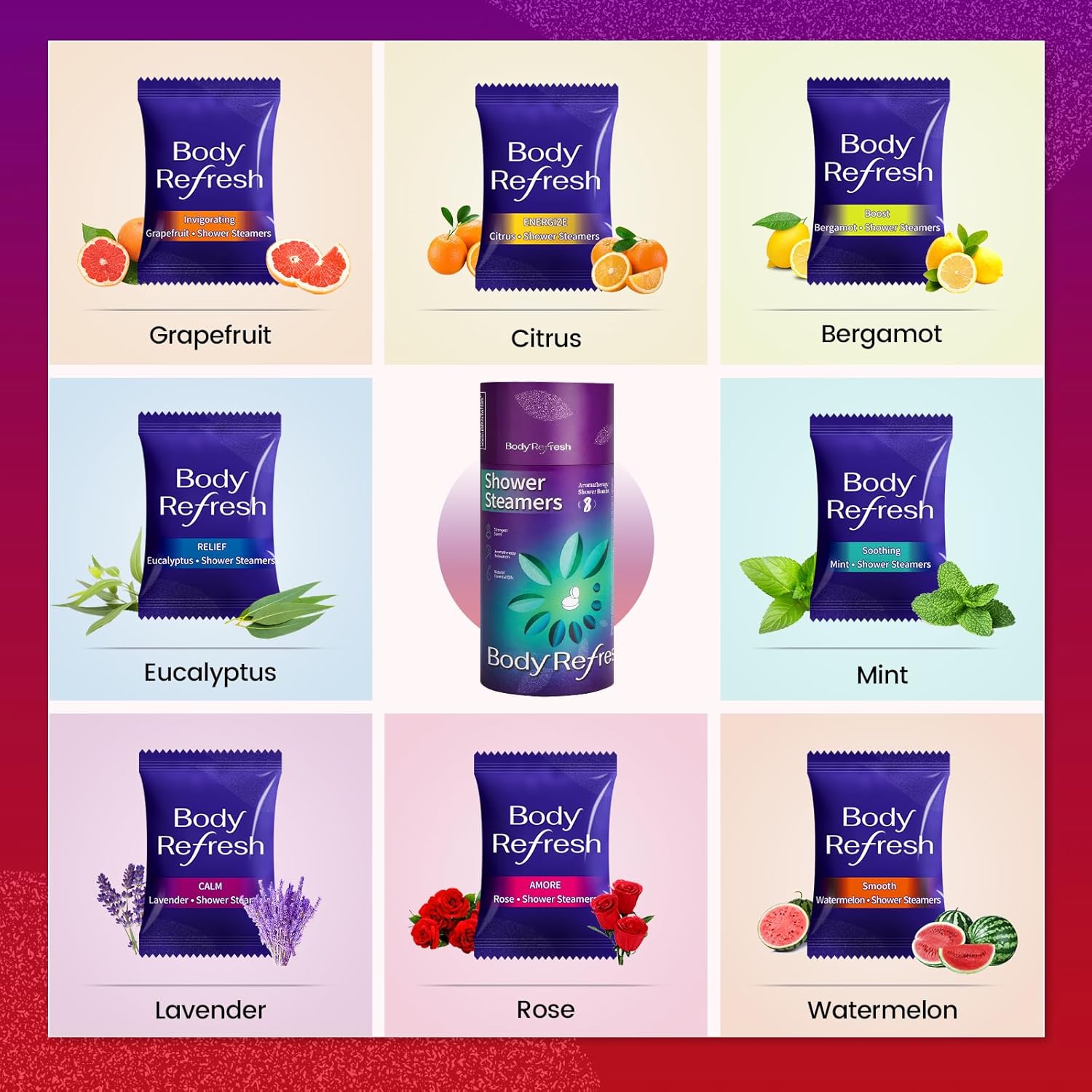 Eight Scents: Enjoy eucalyptus, lavender, mint, rose, grapefruit, watermelon, citrus, and bergamot. Made with pure essential oils, these shower steamers deliver long-lasting fragrance. Perfect gifts for women or men who have everything, or best friend gifts for women.