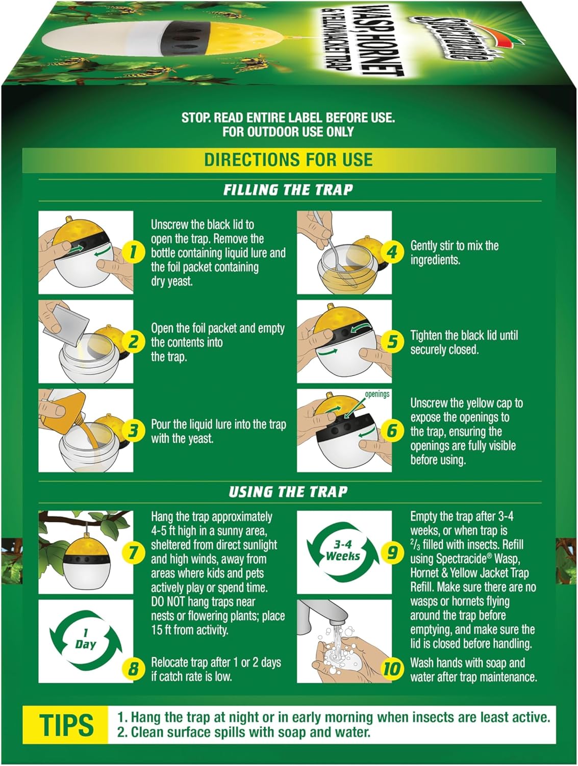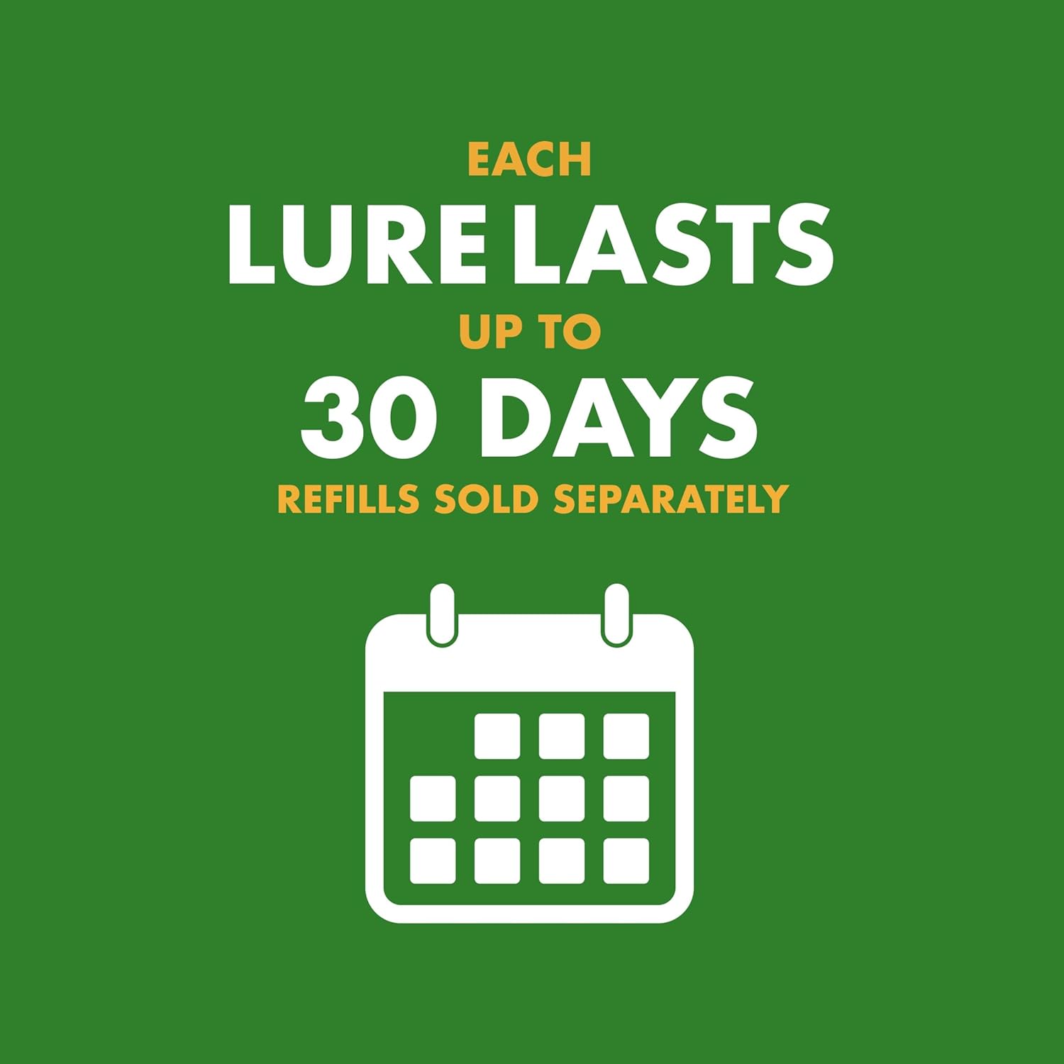 Empty trap after 3-4 weeks or when 2/3 full of insects. Refills available for purchase separately.