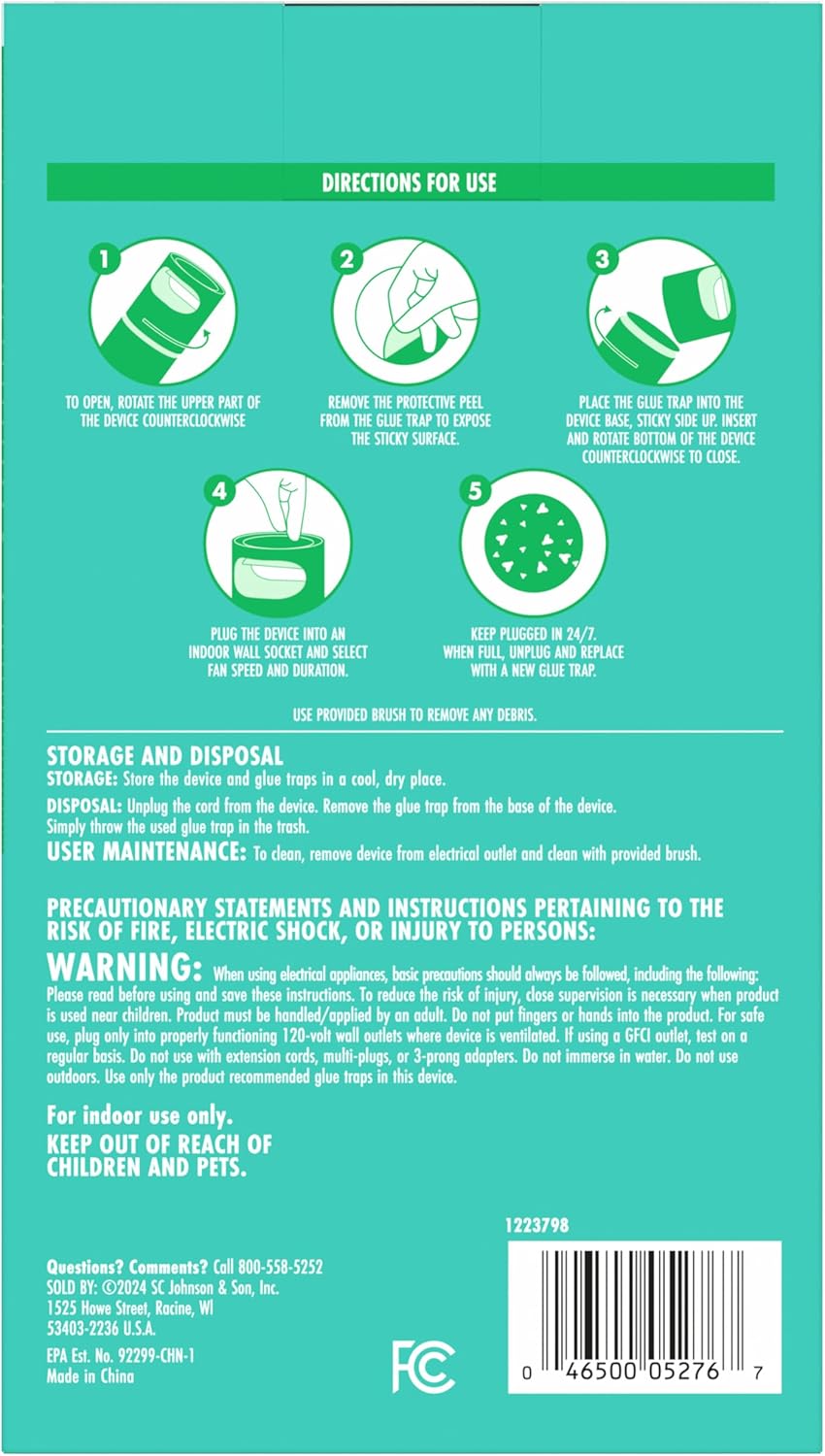 - How It Works: Flying insects are attracted by the discreet UV light, while the quiet fan pulls them into the device where pests are captured on the sticky glue trap; Replace glue card when full