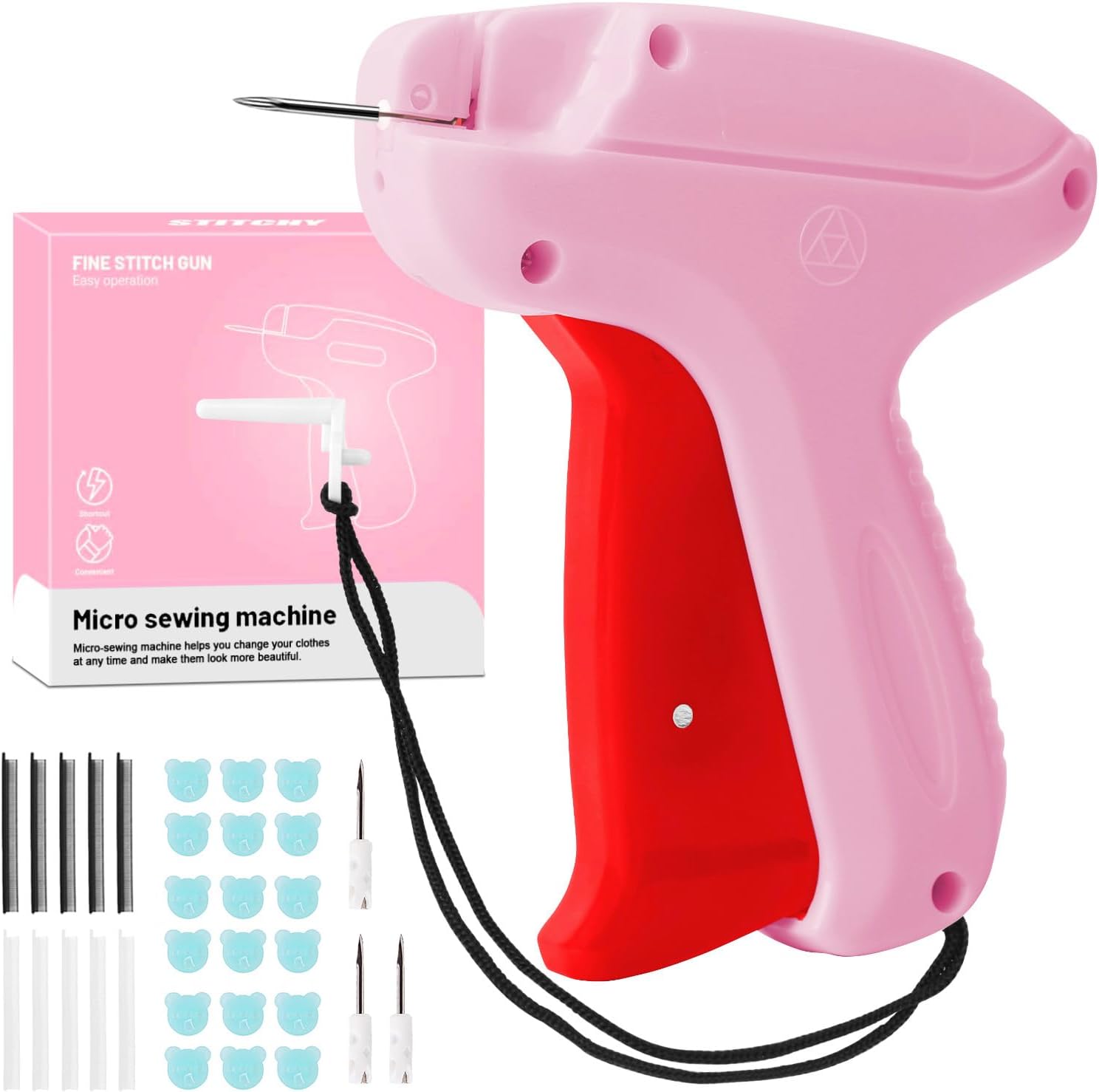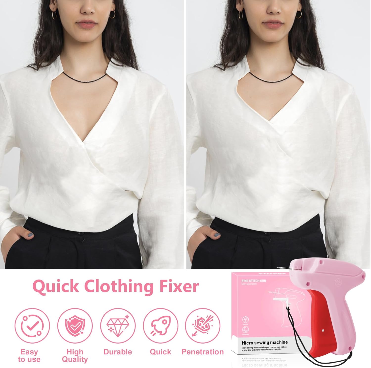 - Versatile and Easy to Use Say goodbye to pins, glue, and tacks! Our mini stitch gun for clothes allows you to easily complete quick sewing, hemming, and fastening tasks. From attaching buttons and elastic bands to fixing low necklines and hemming curtains, this stitch mini stitch gun is a game-changer in terms of speed and convenience