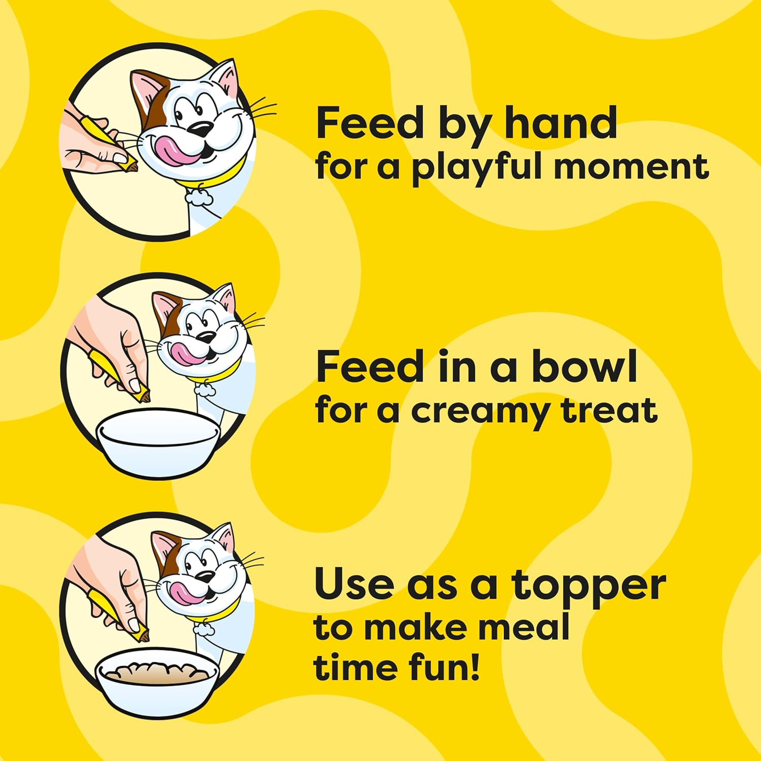 - Versatile Feeding Experience: Feed this lick able wet cat treat by hand for an interactive bonding experience, treat on its own in a dish for an irresistible treat, or use as a delicious meal topper.