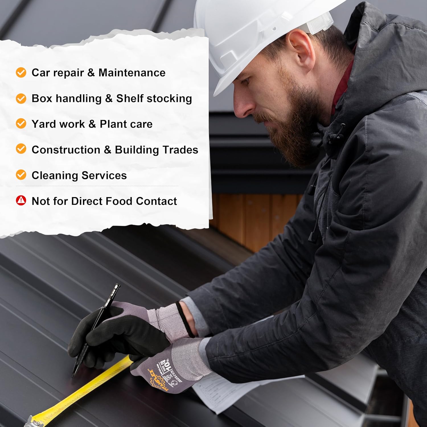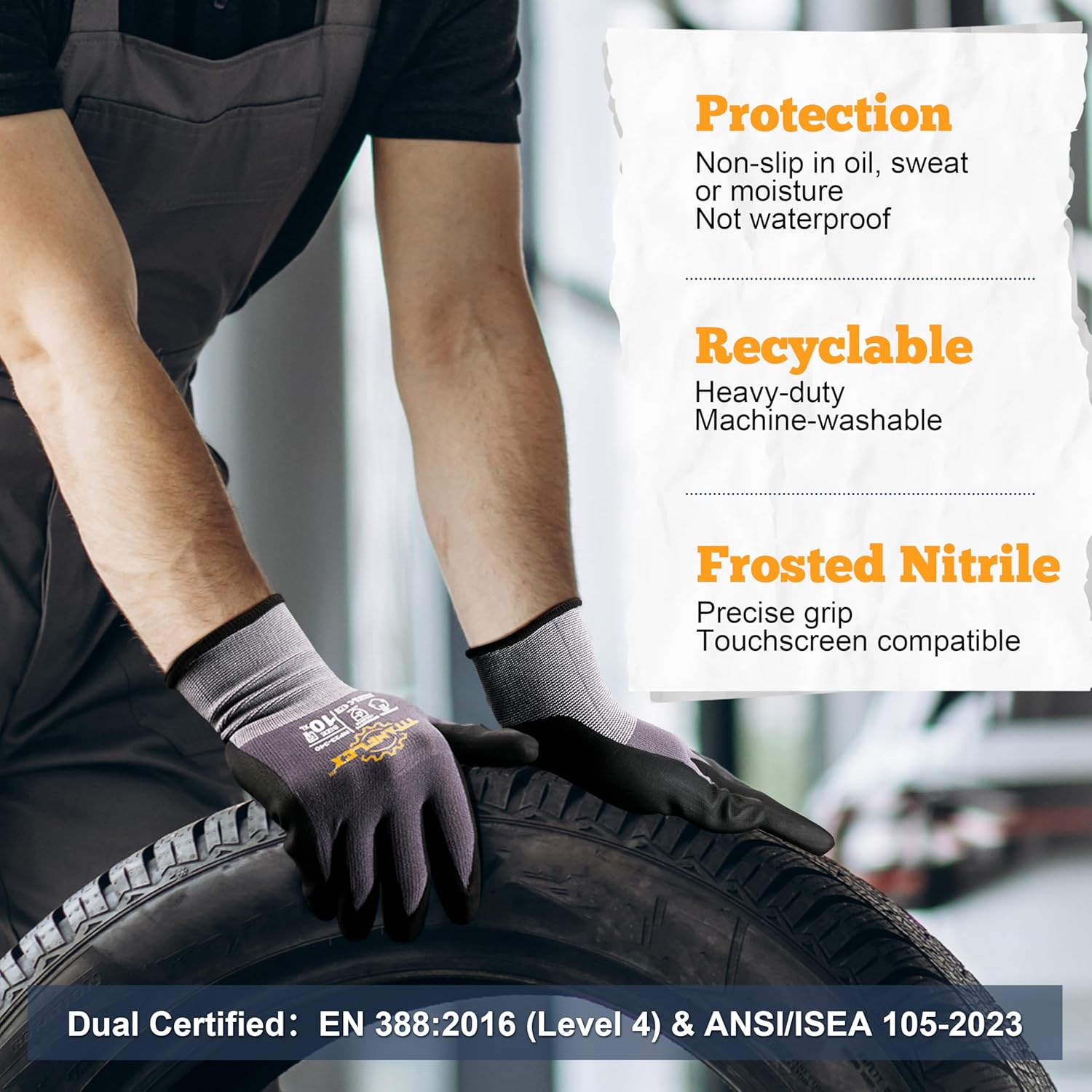 TitanFlex Work Gloves Microfoam Nitrile Coated Men Women-6 Pairs, Safety Warehouse Gloves Mens Working Glove with Grip Heavy Duty, Touchscreen, Seamless Knit Nylon for Automotive, Garden (Large)